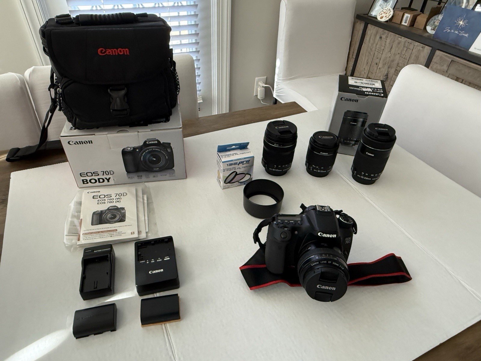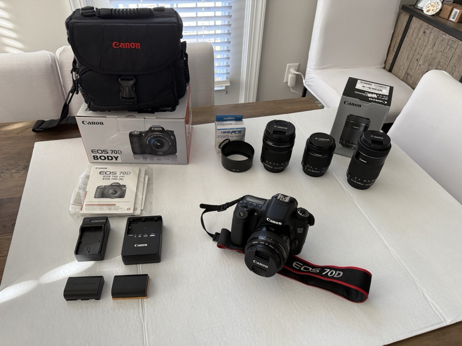 Canon EOS 70D DSLR Camera Bundle 4 Lenses 18-135, 18-55, 55-250, 50mm Bag