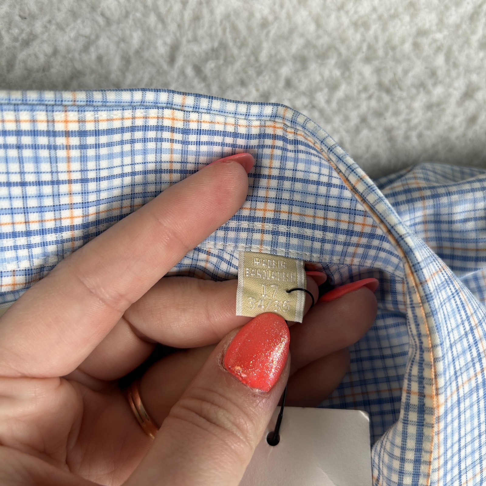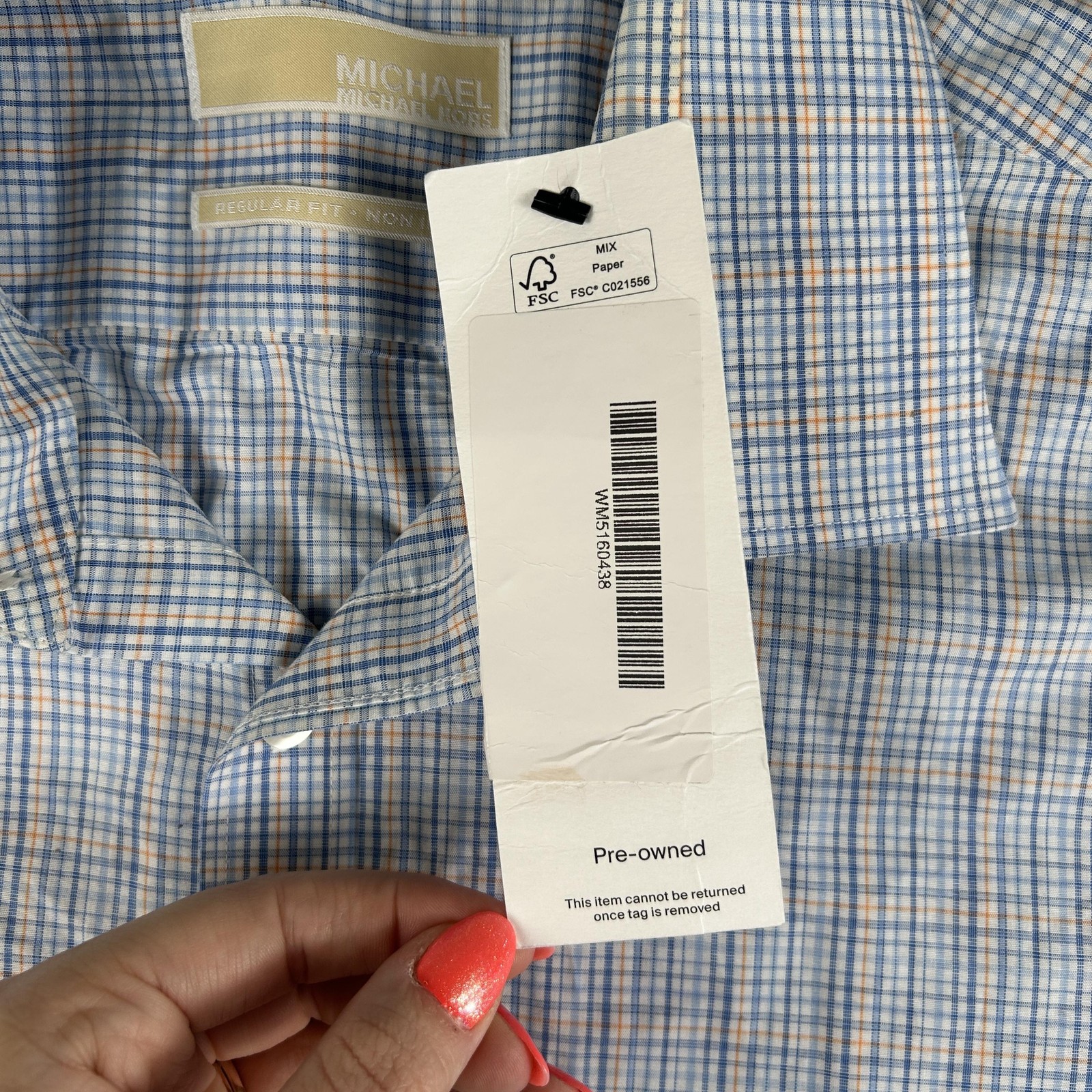 как выглядит Michael Michael Kors Dress Shirt Mens 17 34/35 Blue Check Regular Fit Non Iron фото