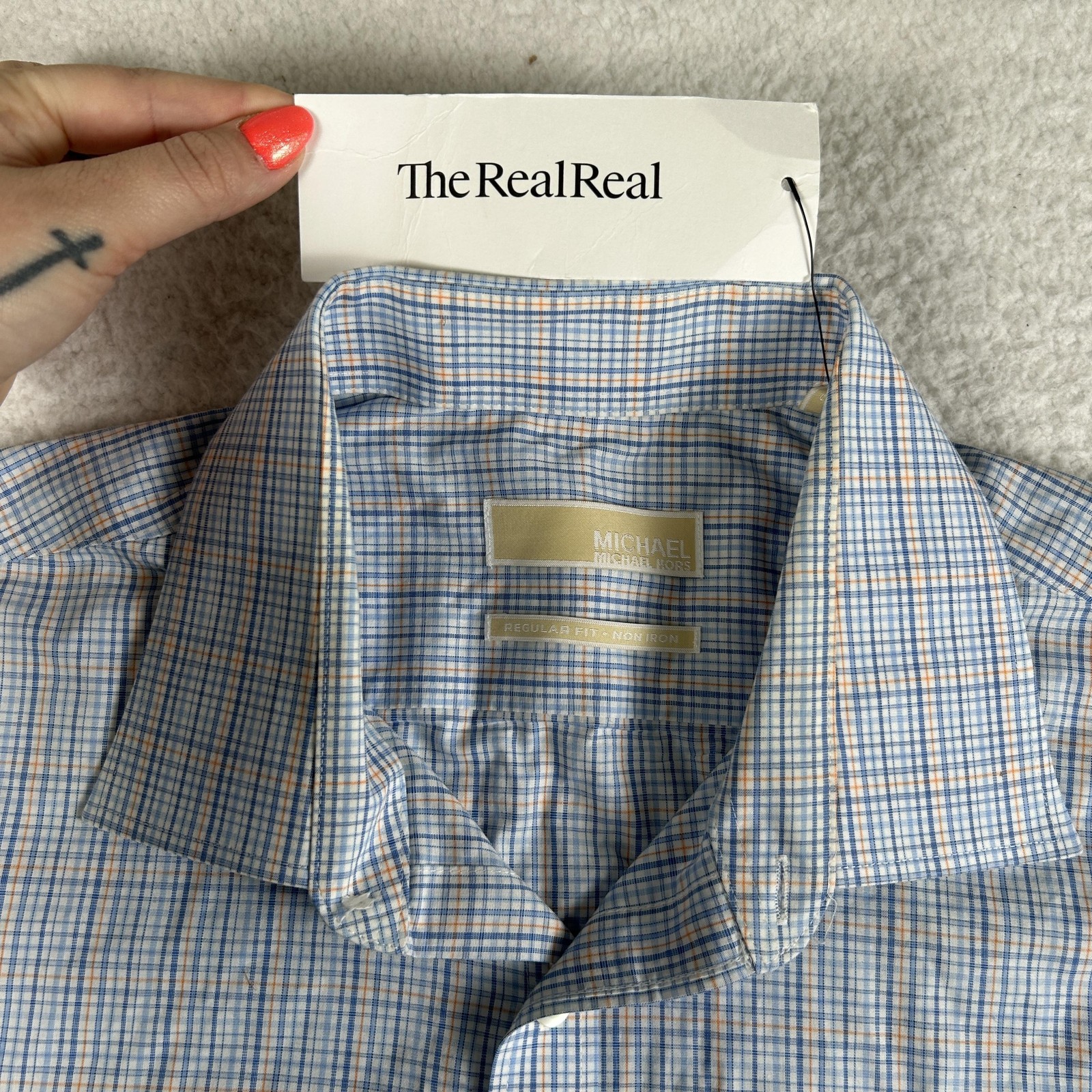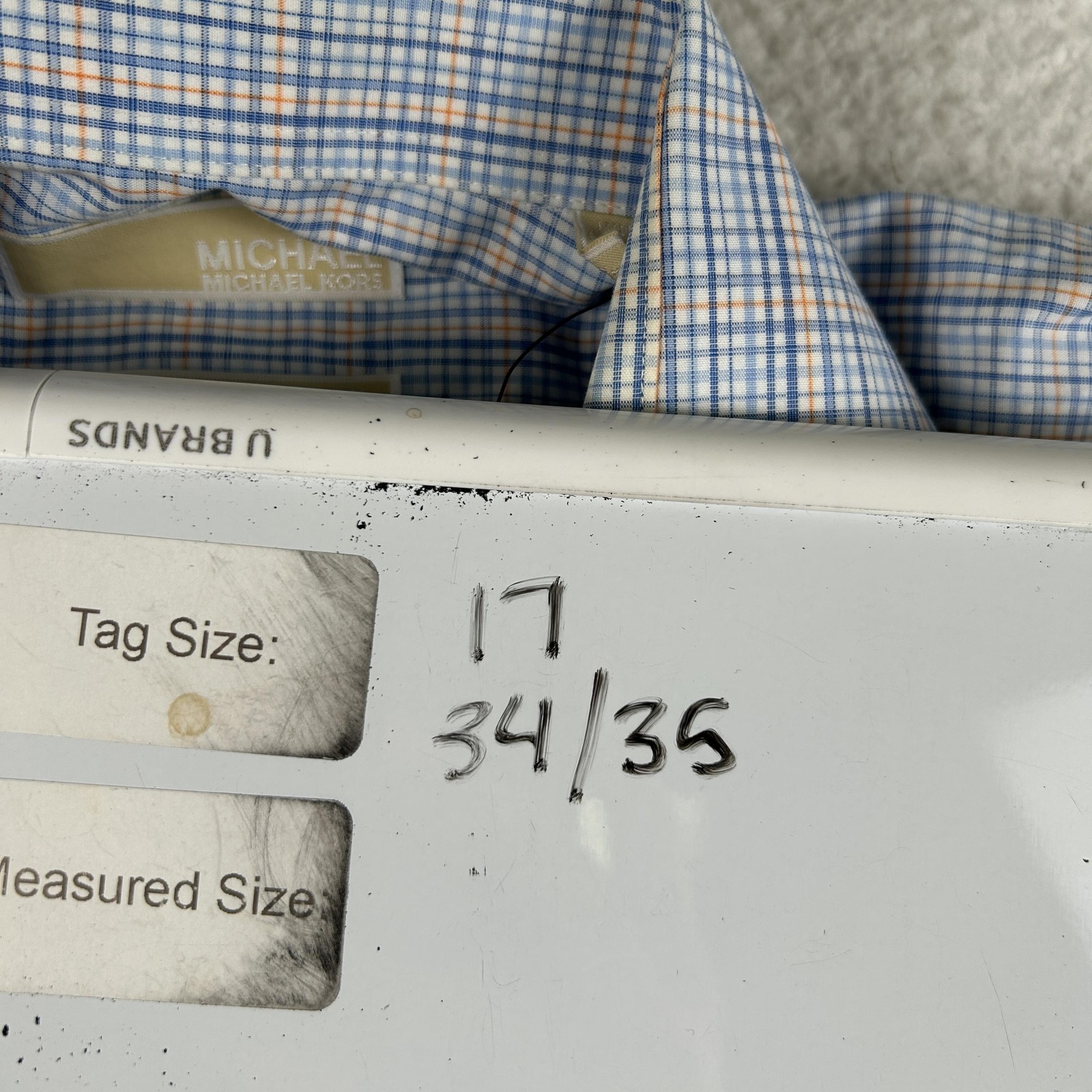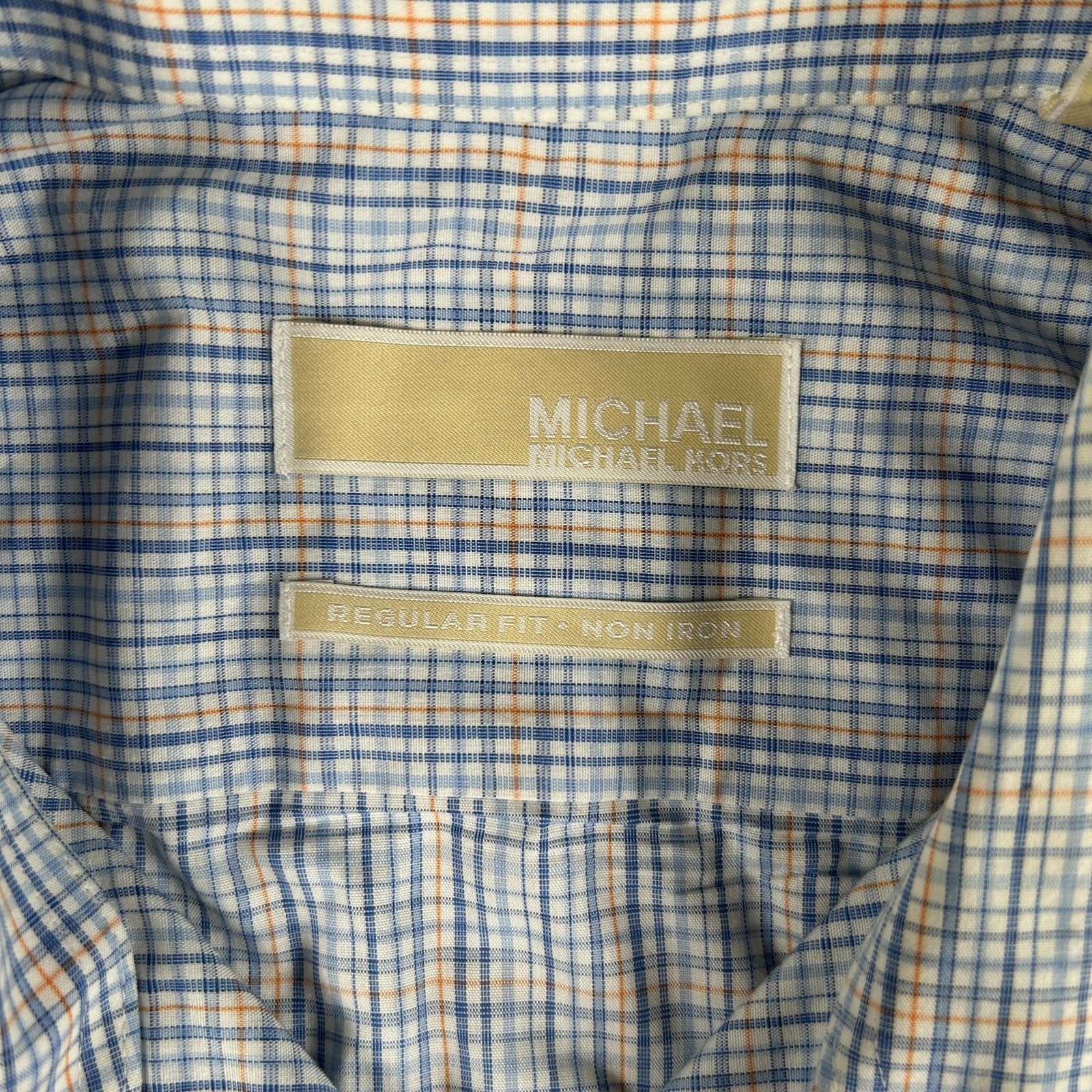 Michael Michael Kors Dress Shirt Mens 17 34/35 Blue Check Regular Fit Non Iron