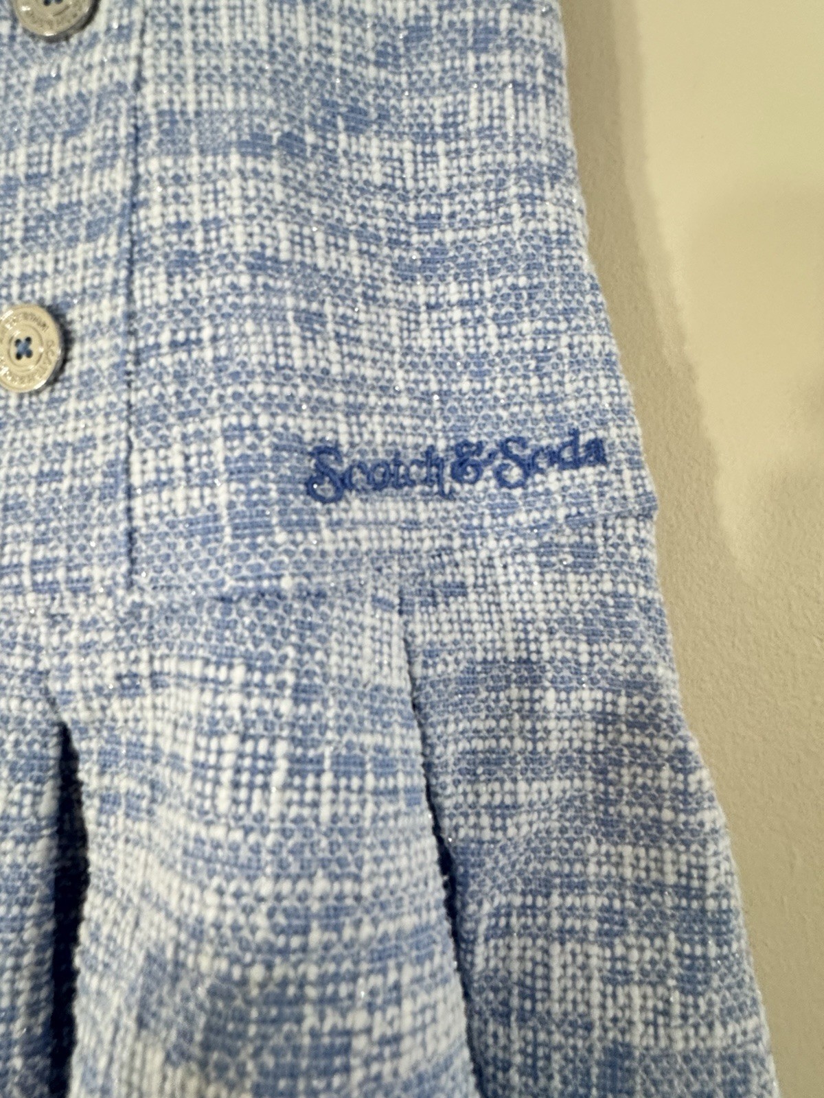 как выглядит NWOT Scotch Soda Kids Pleated Boucl Tweed Dress in blue and white Size L фото