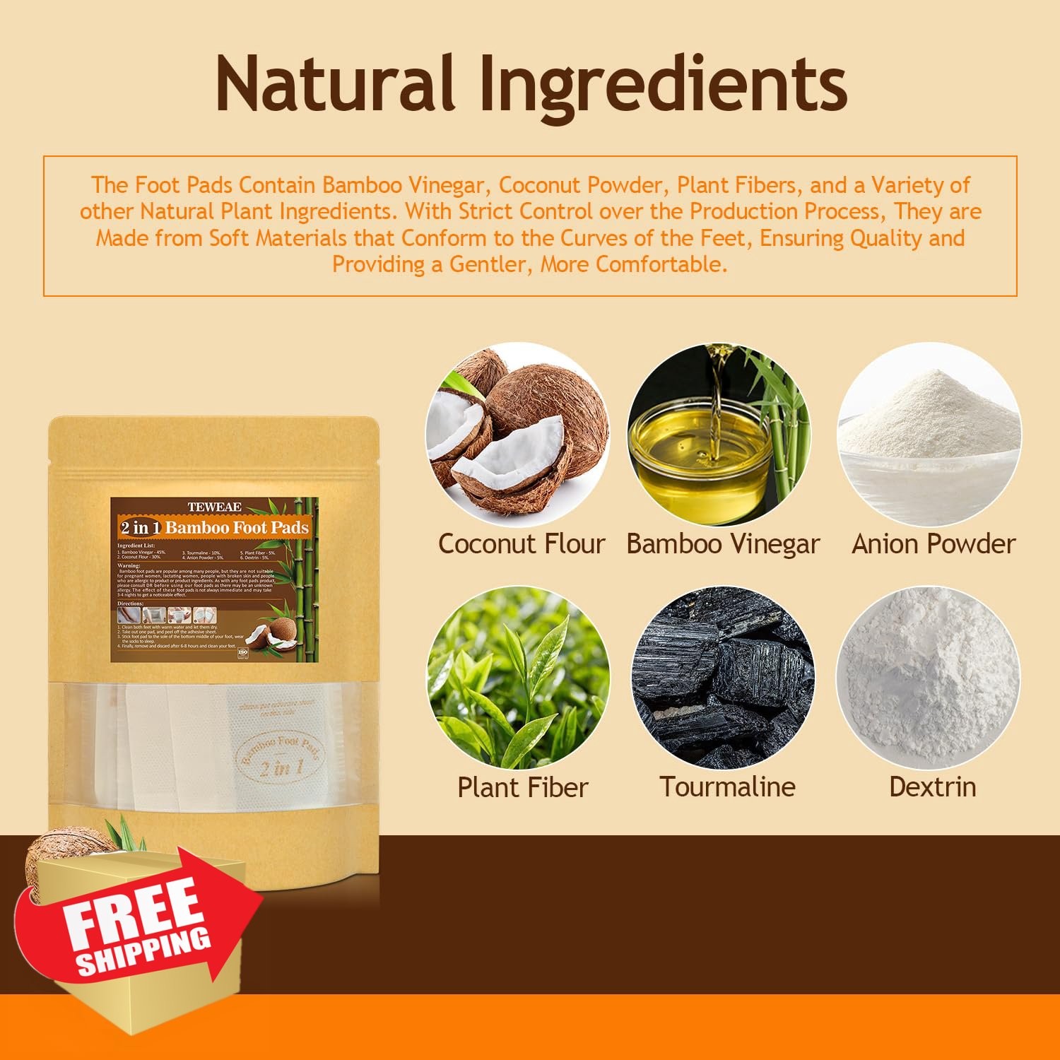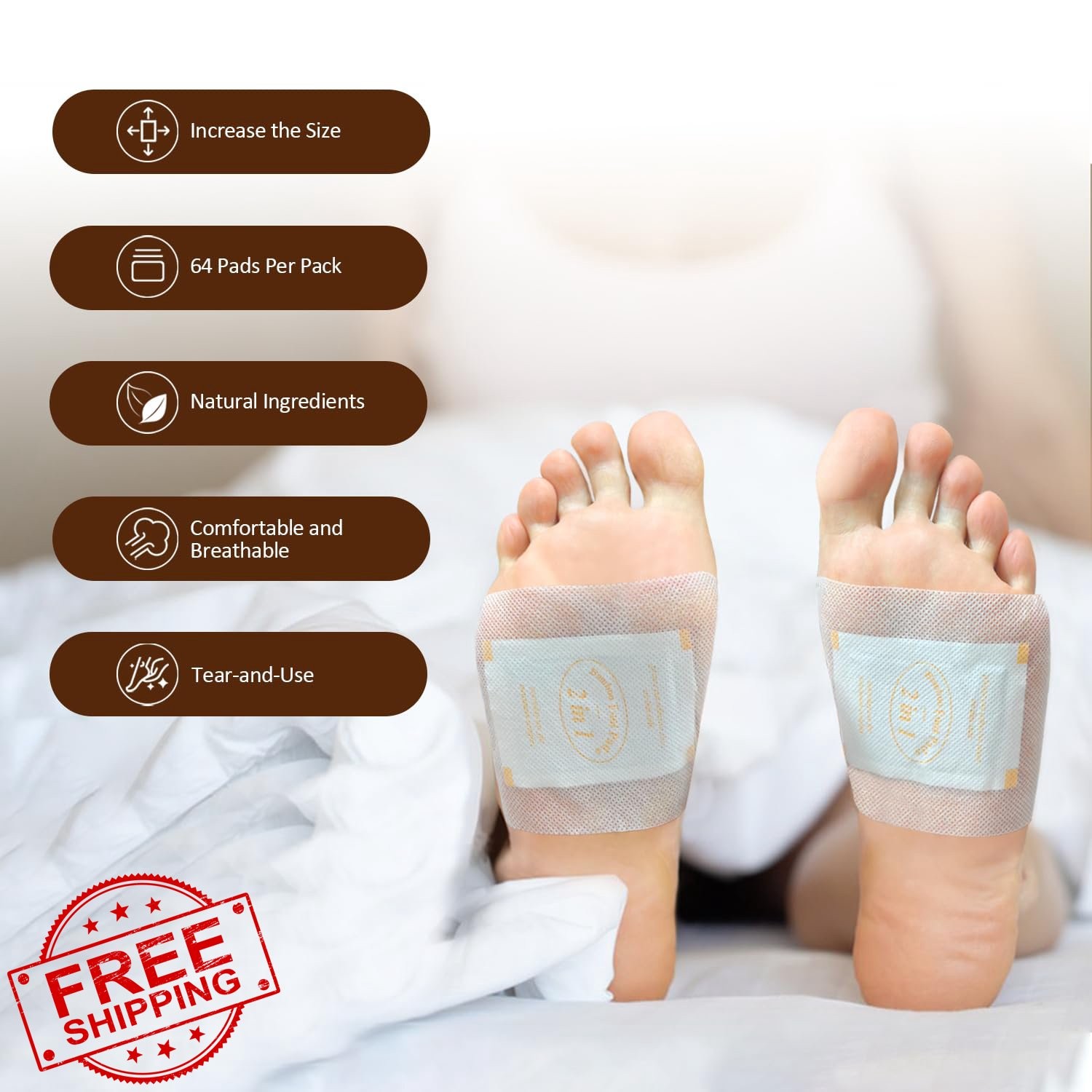 TEWEAE 64pc Bamboo Foot Pads Sleep Patch Natural Herbal One-Piece Design Rela...