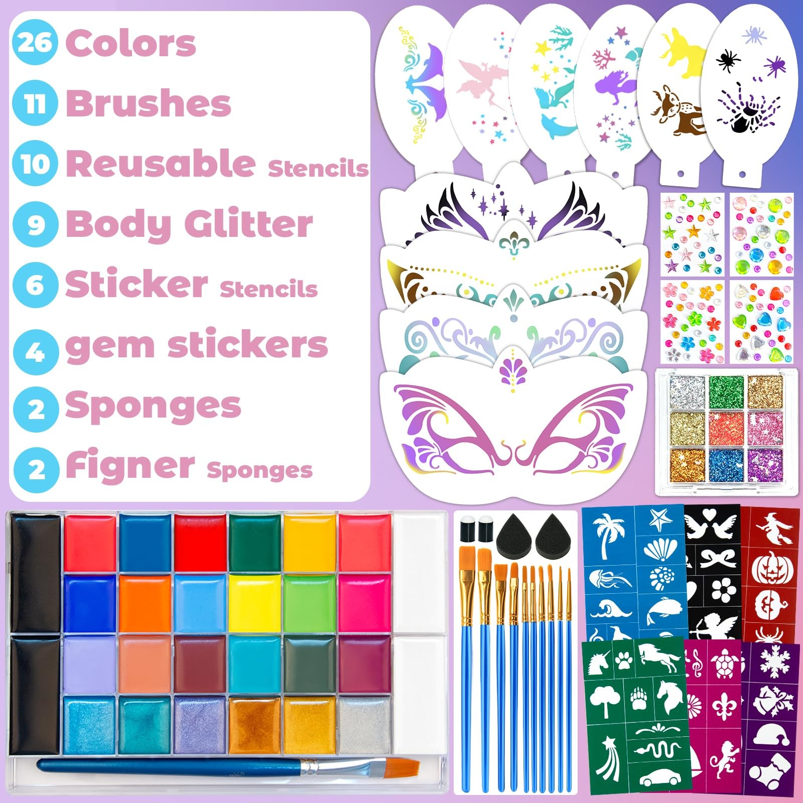 Professional Face Painting Kit 26 Colors Non-Toxic Face Body Paint Palett...