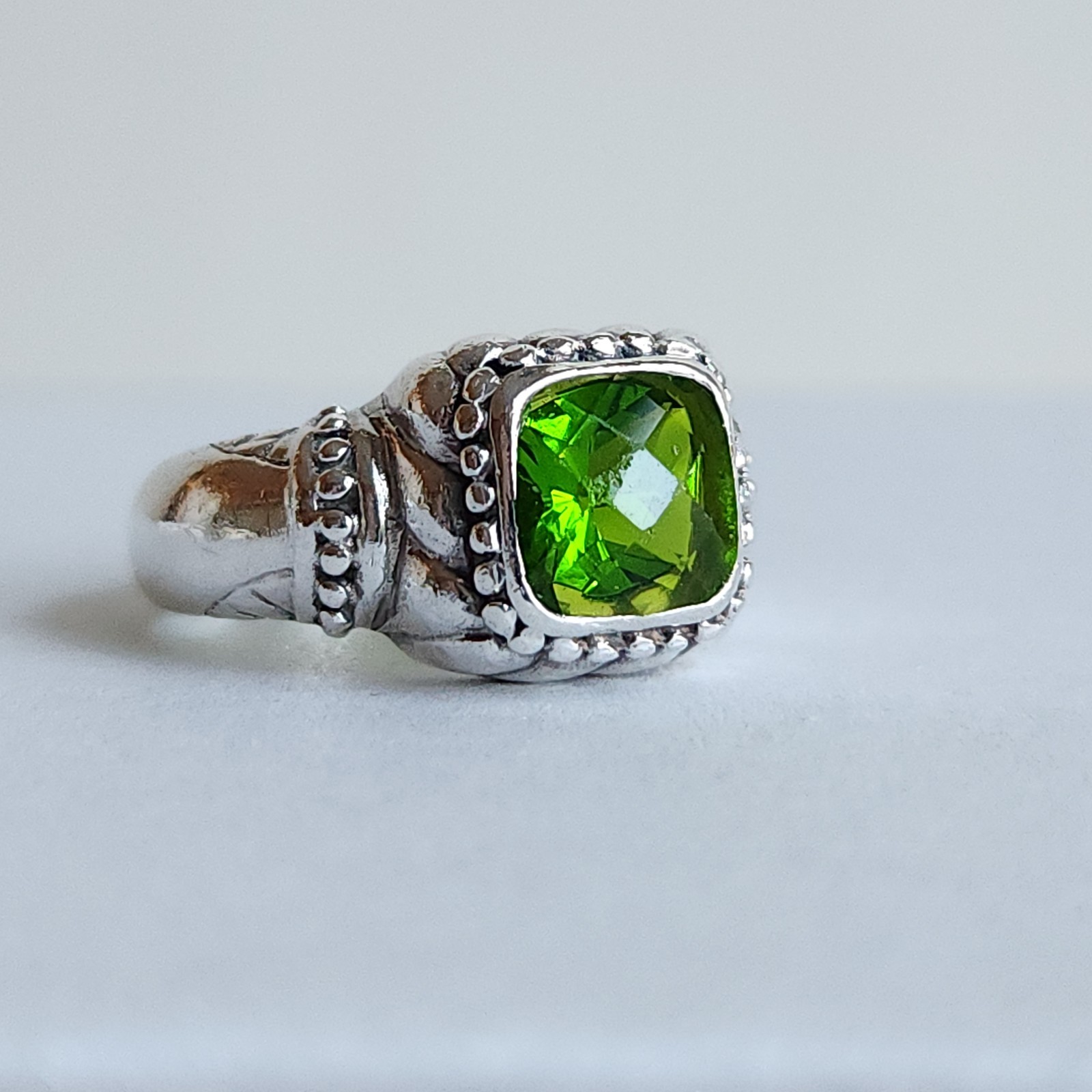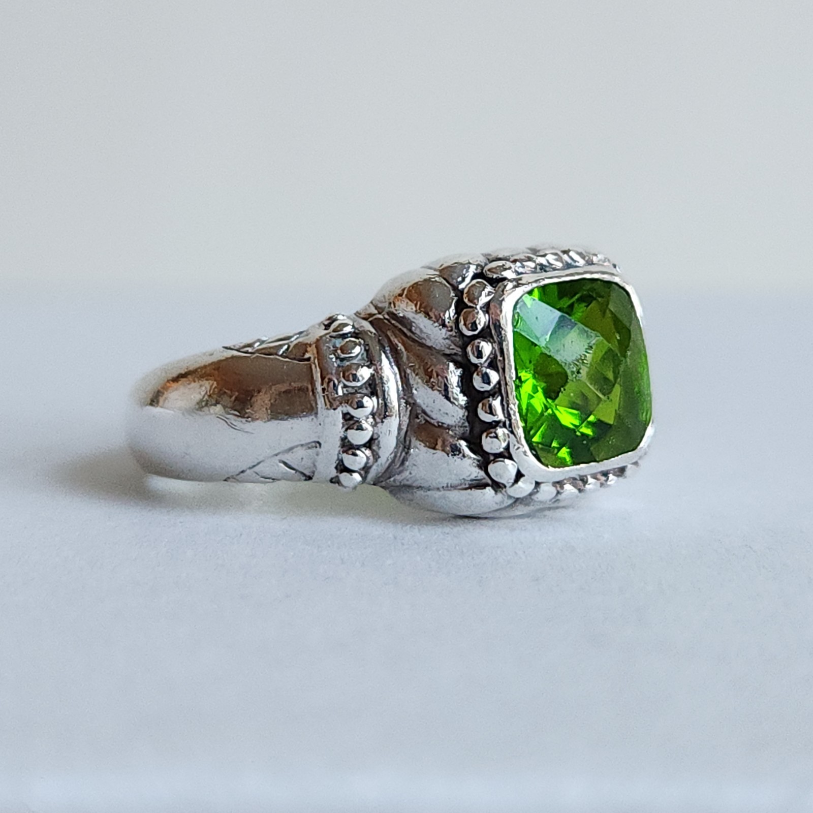 как выглядит Radiant Cut Peridot Sterling Silver Ring  Size 9.25  8.4g  Stamped 925 фото