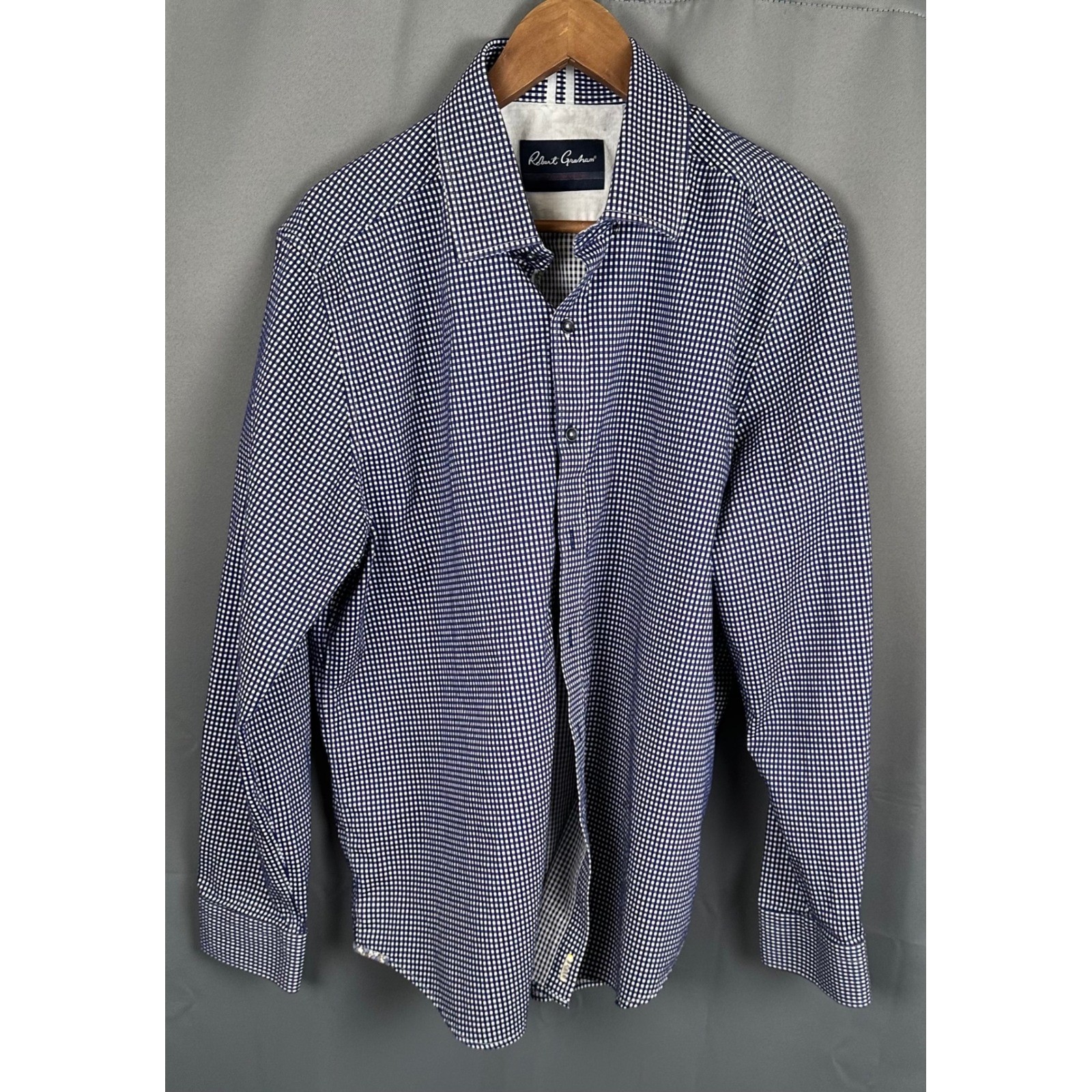 как выглядит Robert Graham Modern American Mens 2XL Gingham Button Down Shirt Navy White фото