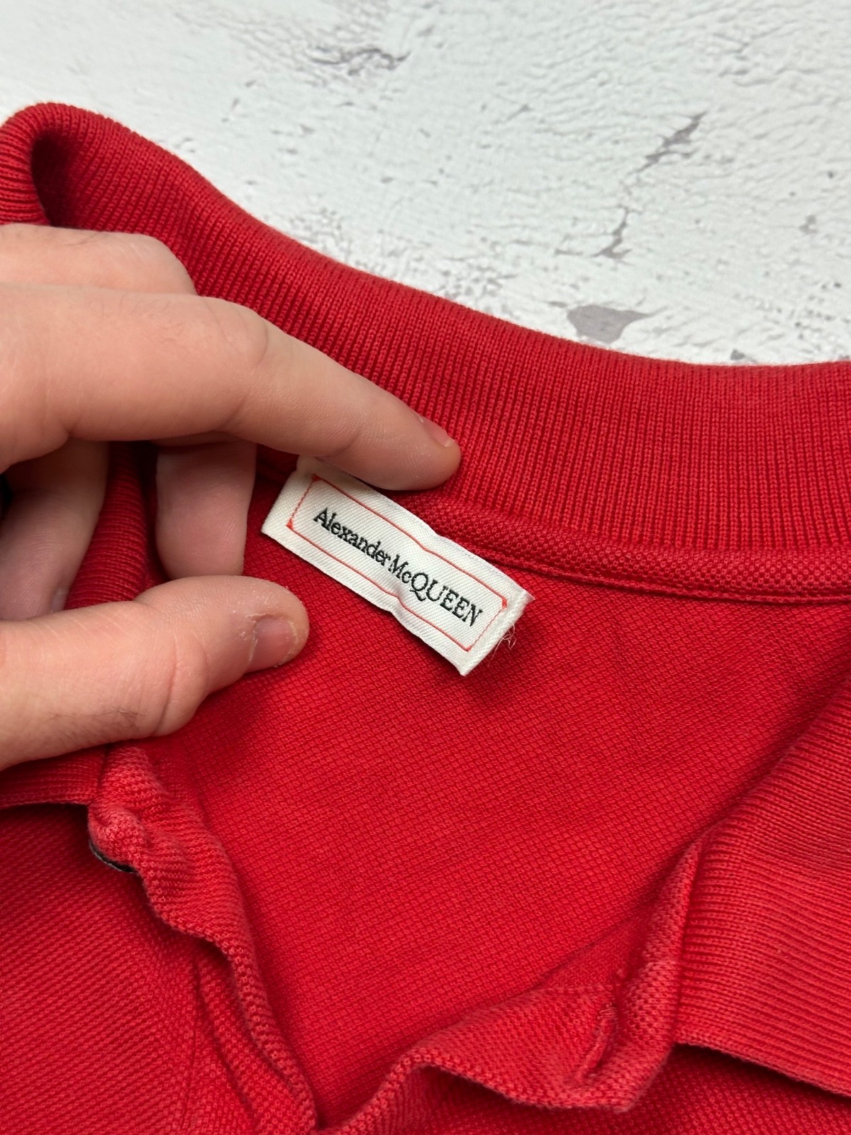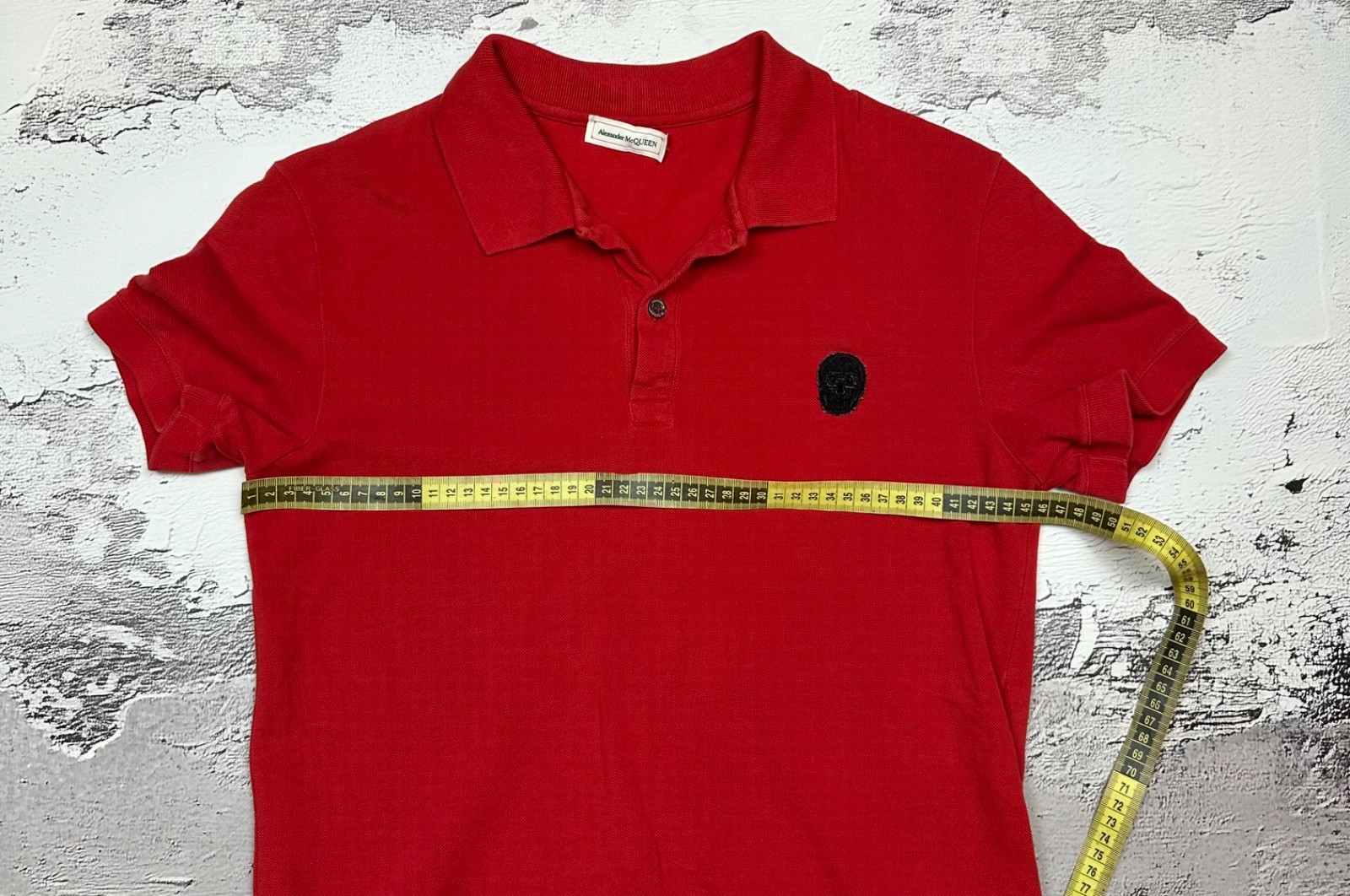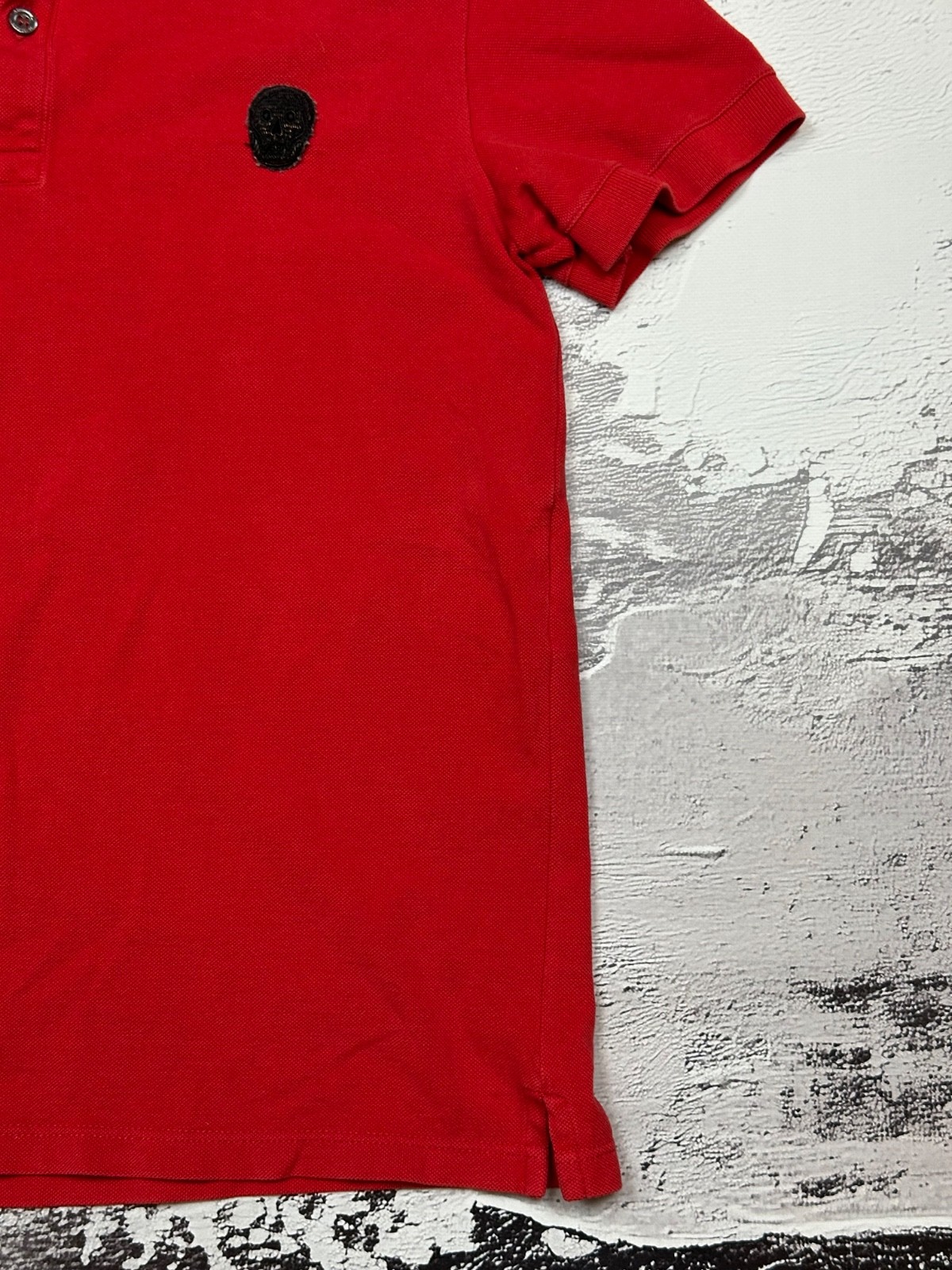 как выглядит Alexander McQueen Red Polo Shirt Black Skull Badge Logo Mens Size XS фото