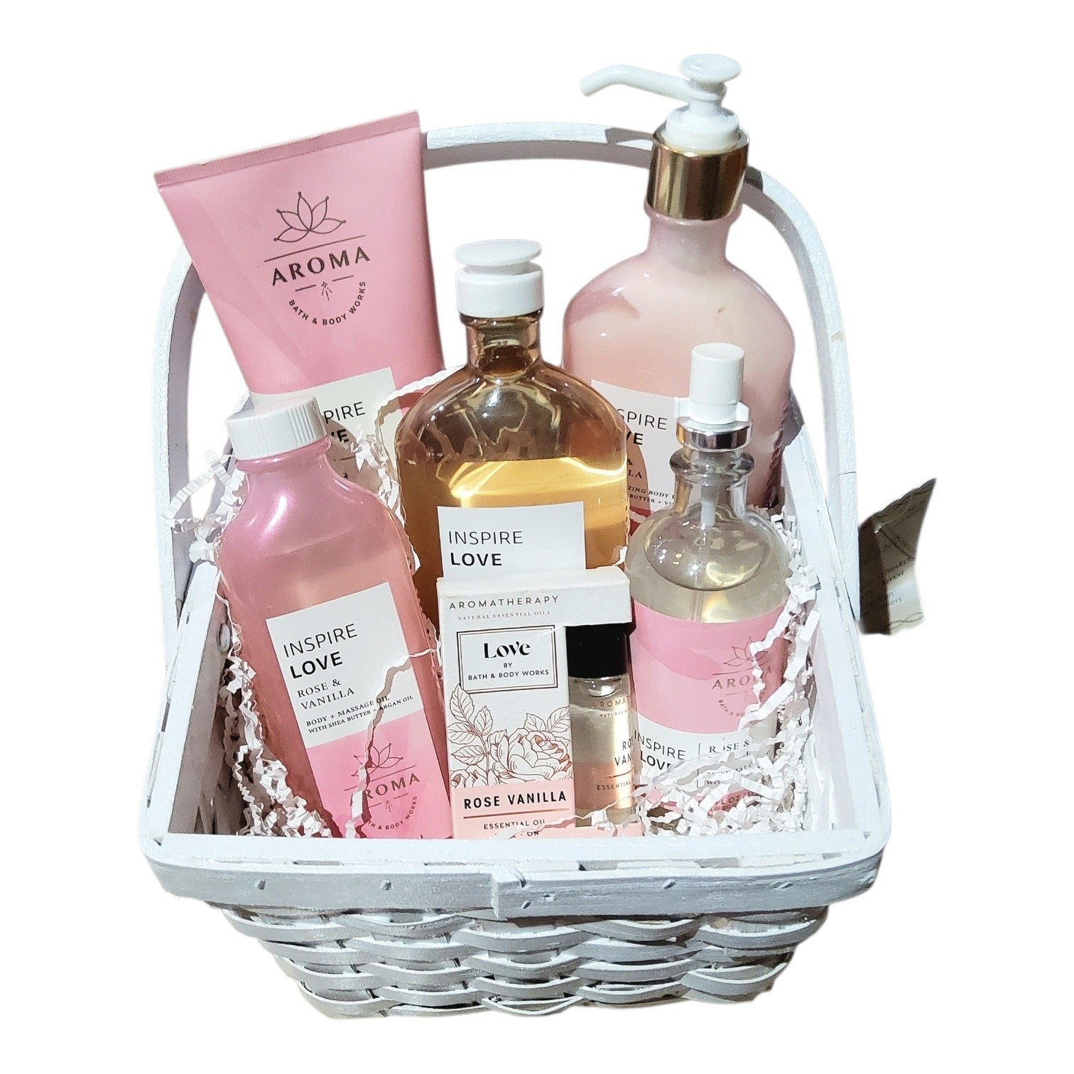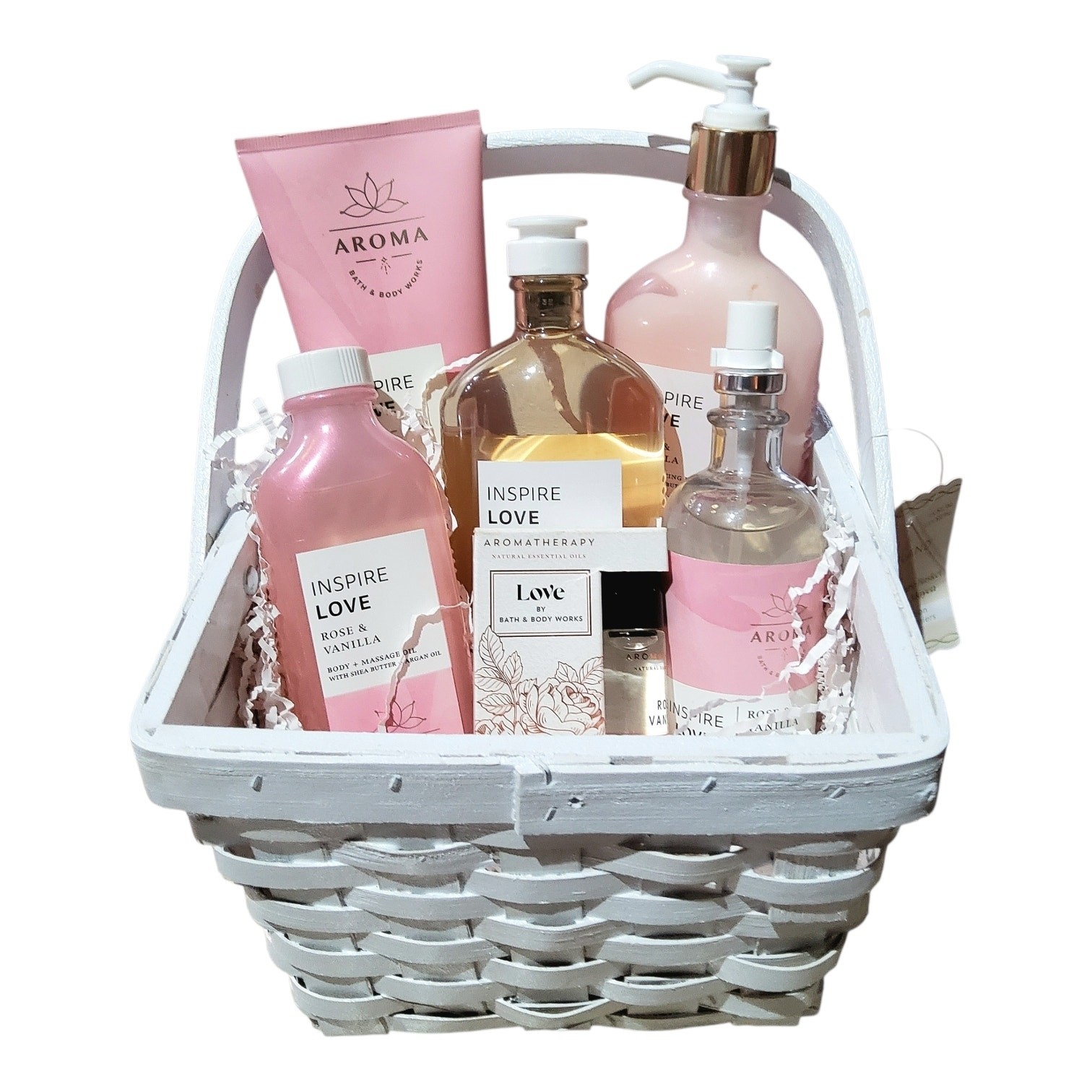 GIFT BASKET ROSE VANILLA LOVE AROMATHERAPY 6 PIECE BY BATH BODY WORKS NEW