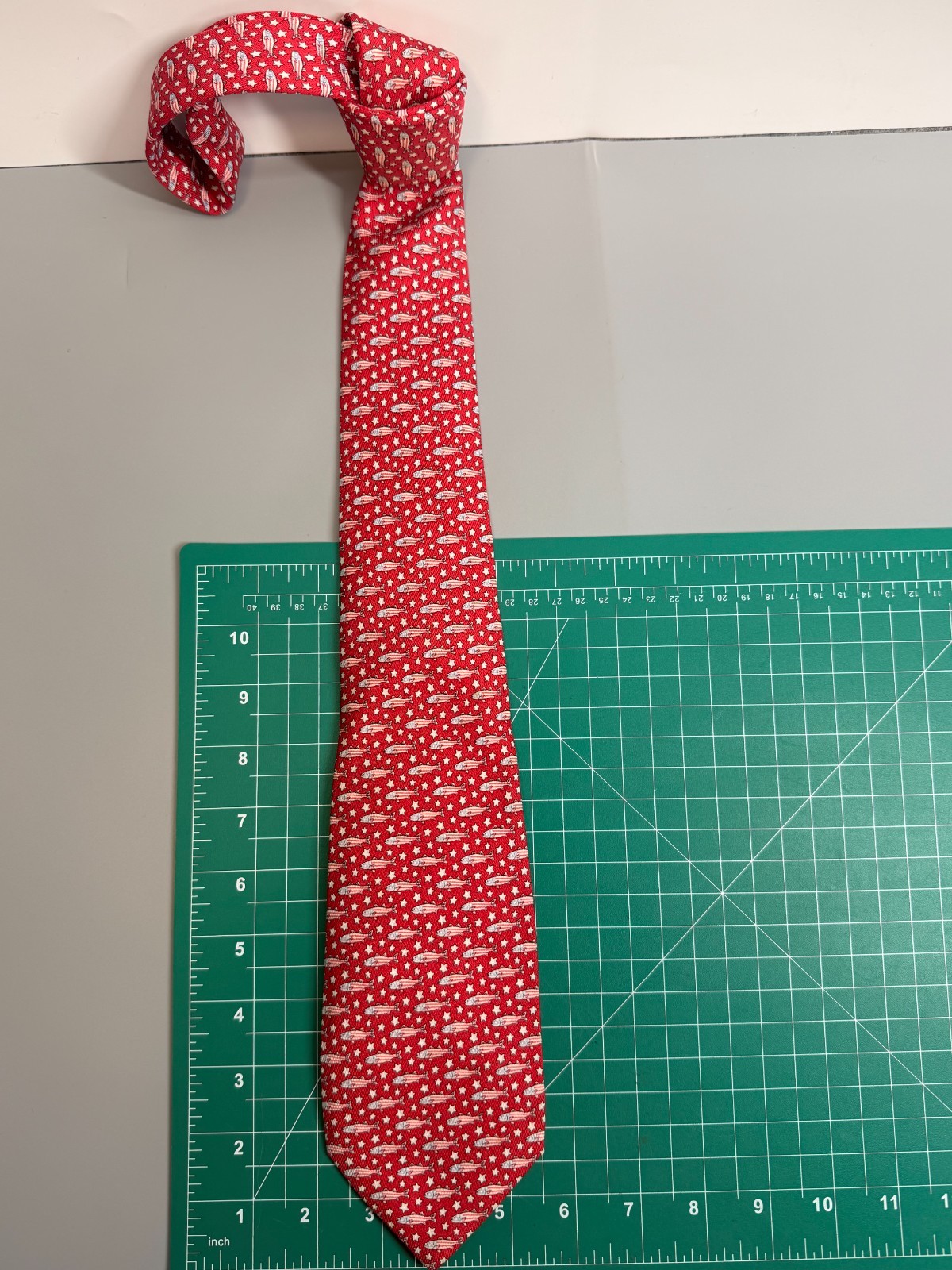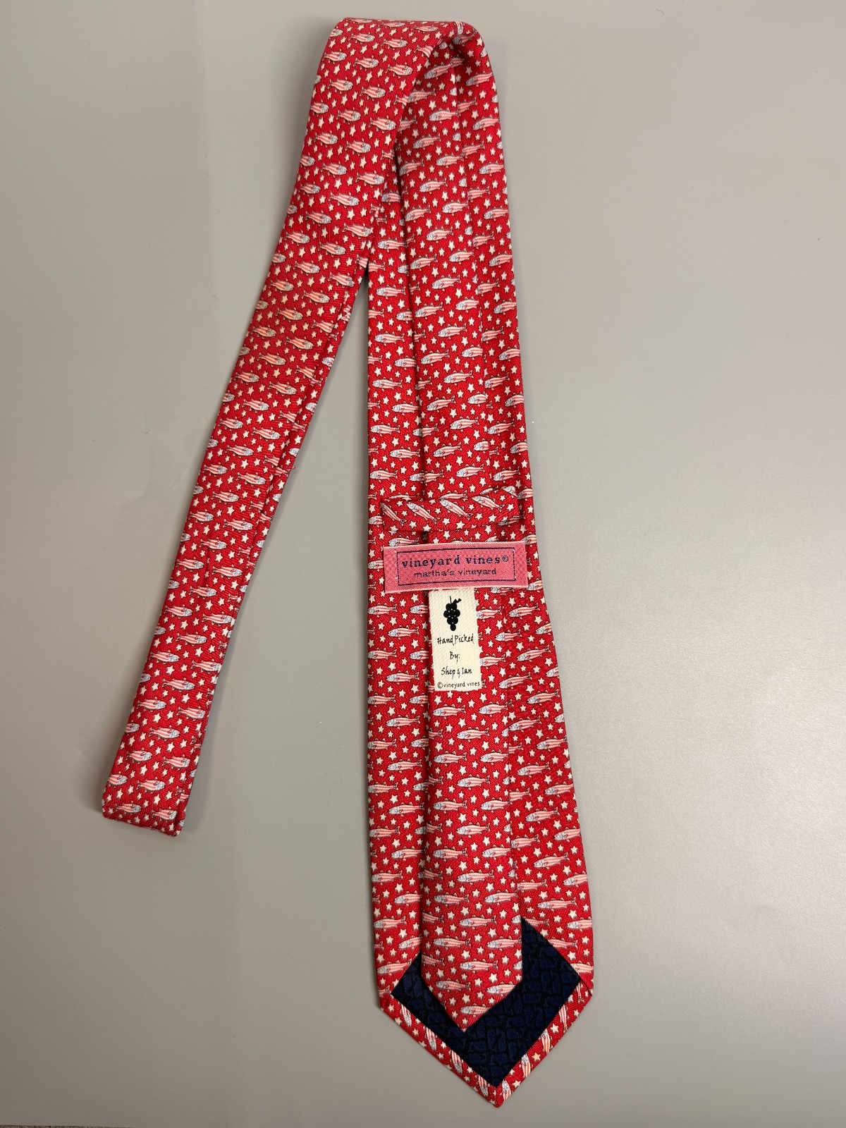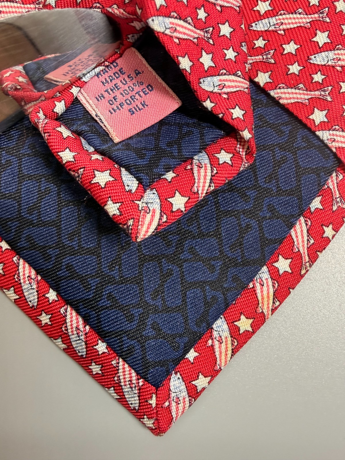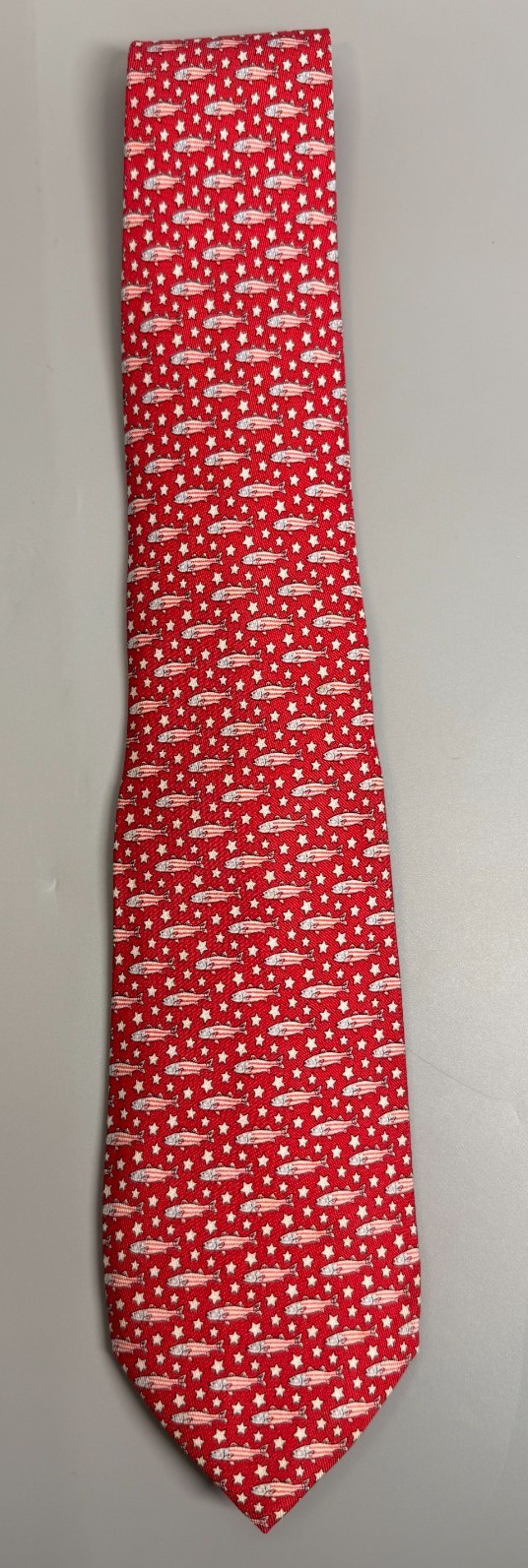 Vineyard Vines Marthas Vineyard Tie Fish Patriotic Red White Blue Silk Necktie