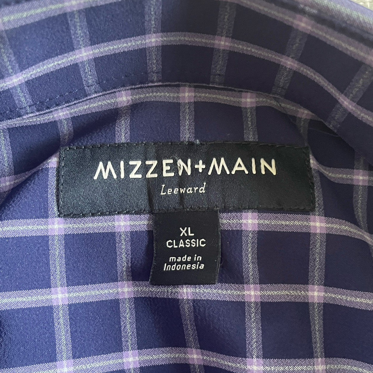 Mizzen Main Leeward Shirt Men s Size XL Blue Plaid Long Sleeve Classic Fit