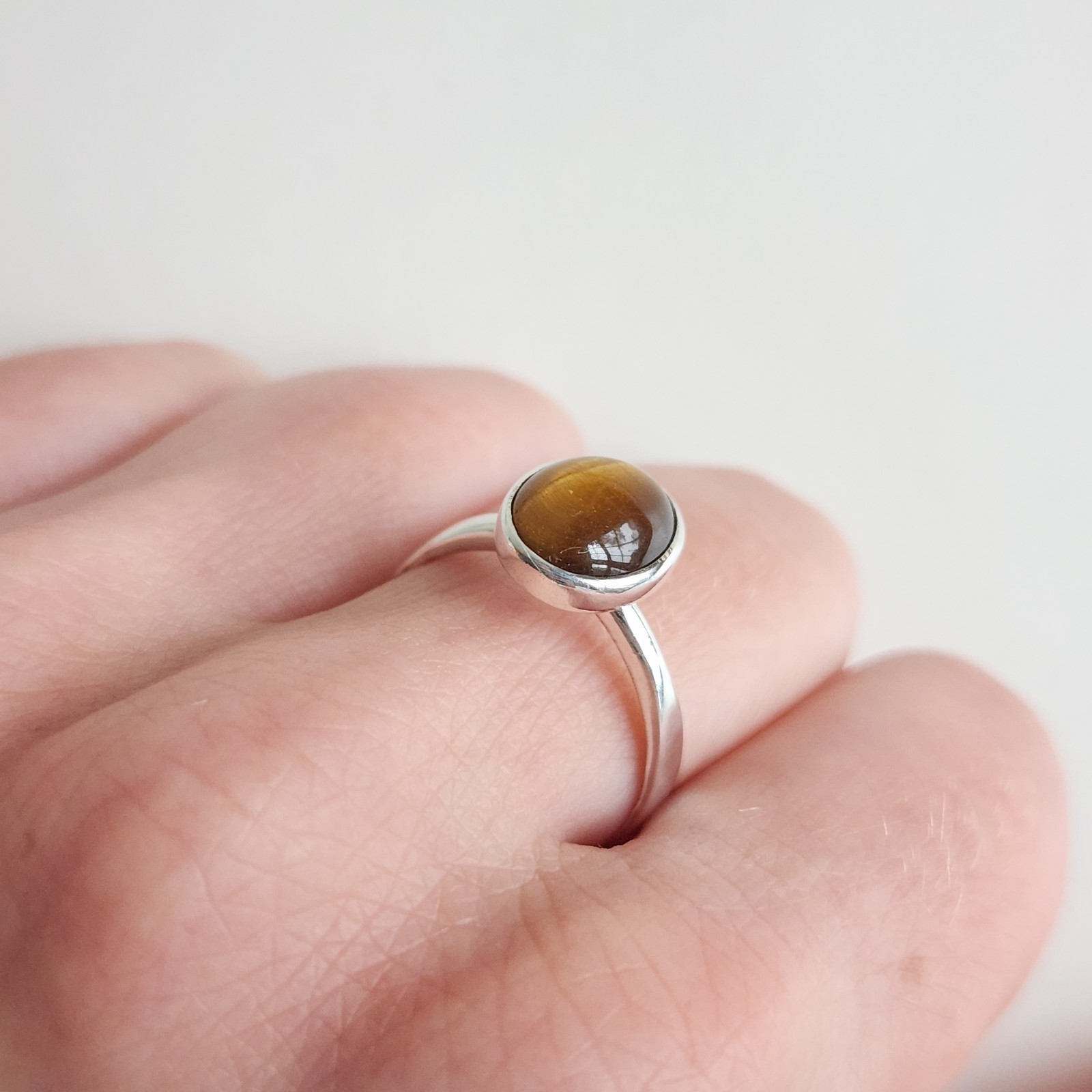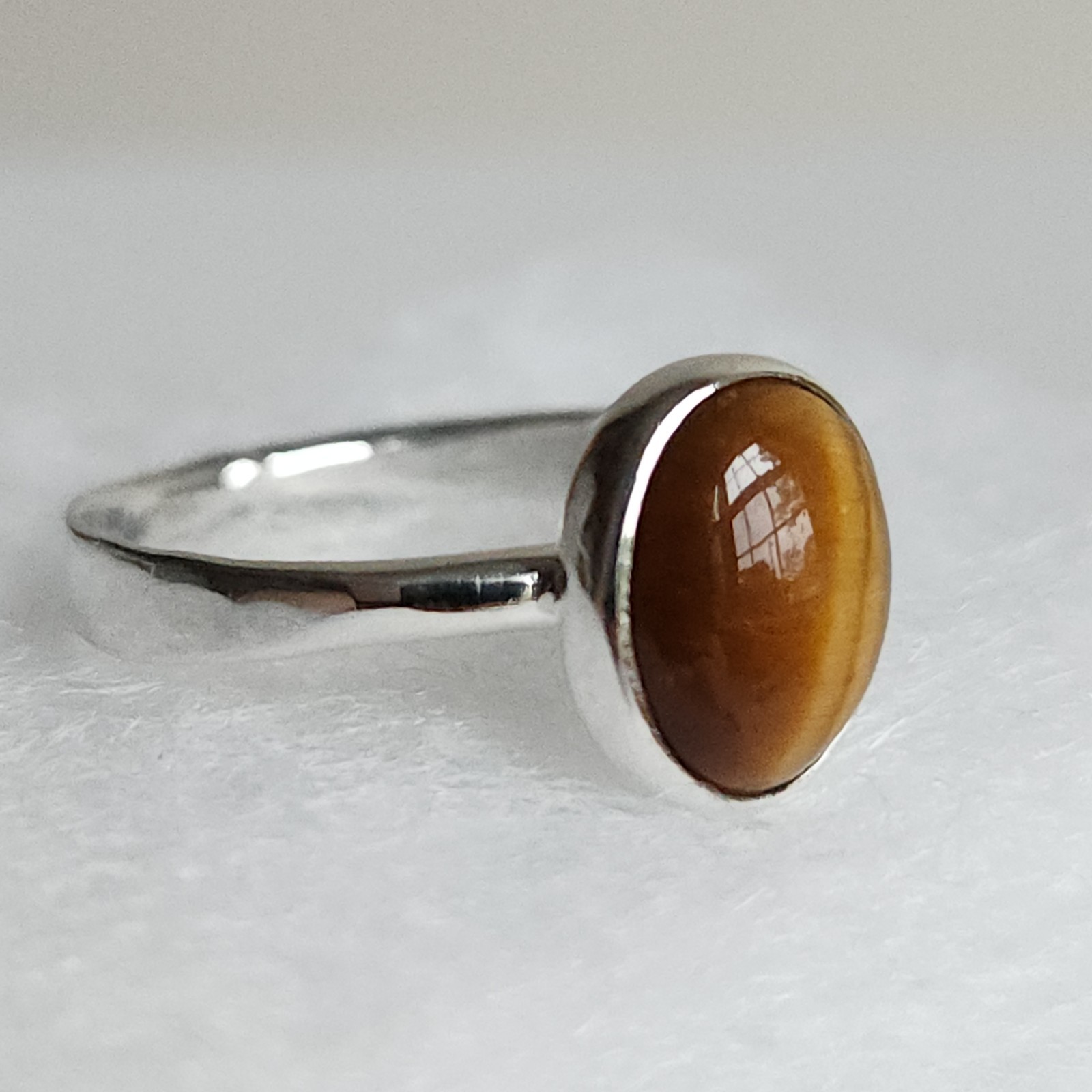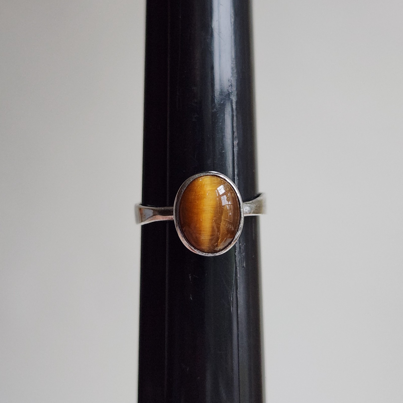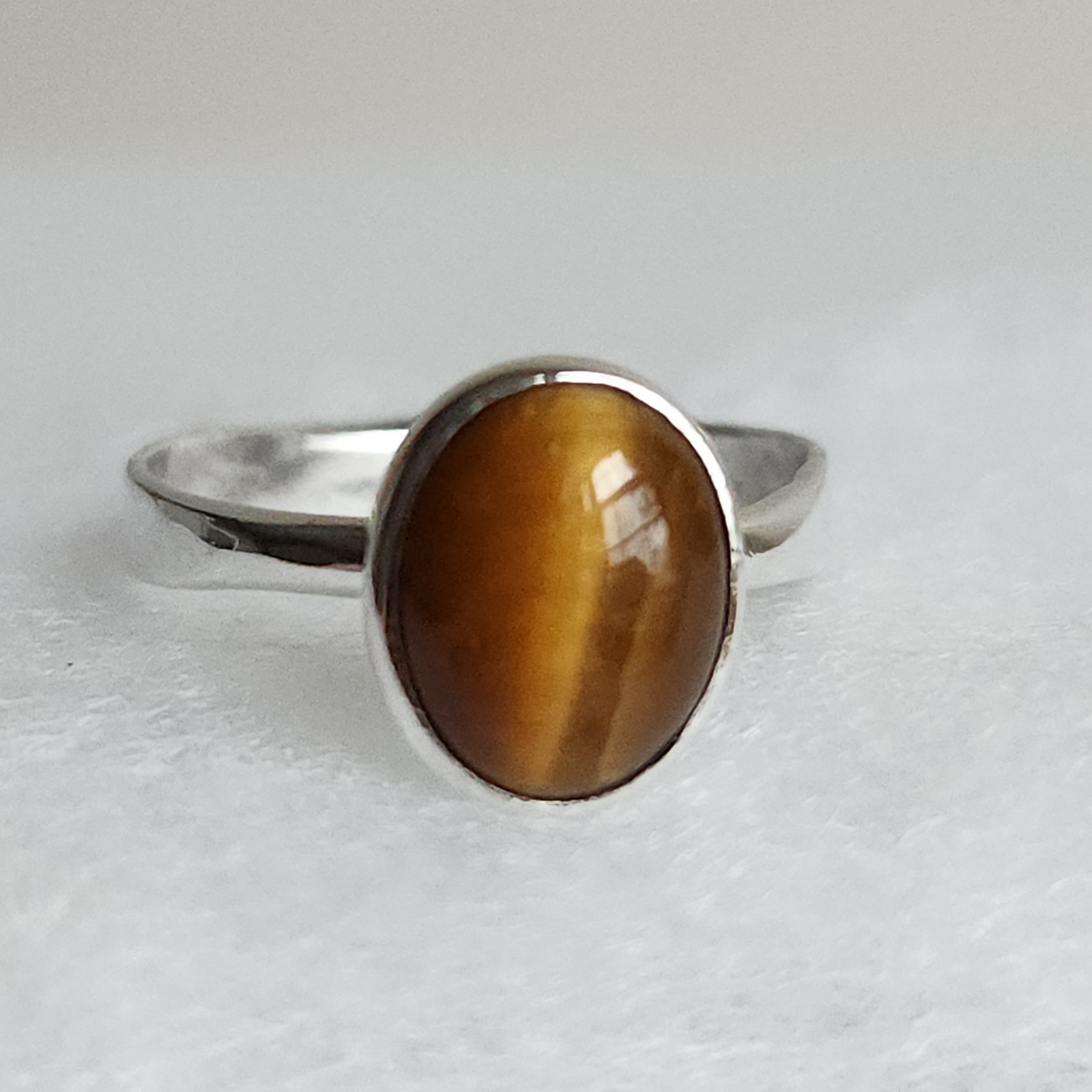 Sterling Silver Tiger s Eye Oval Cabochon Ring, Size 7, 2.7g