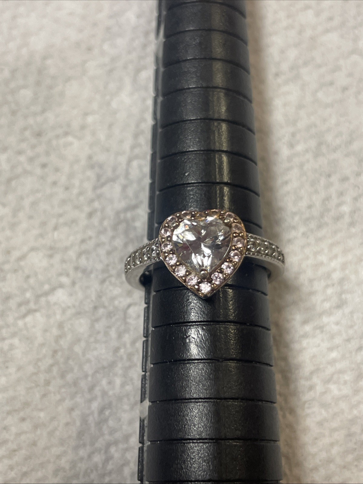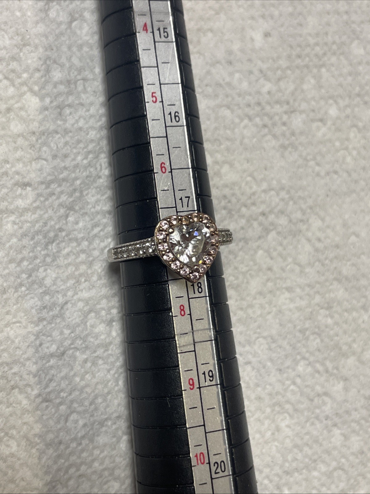 Sterling Silver 925 Heart Shaped CZ Ring Set Size 7