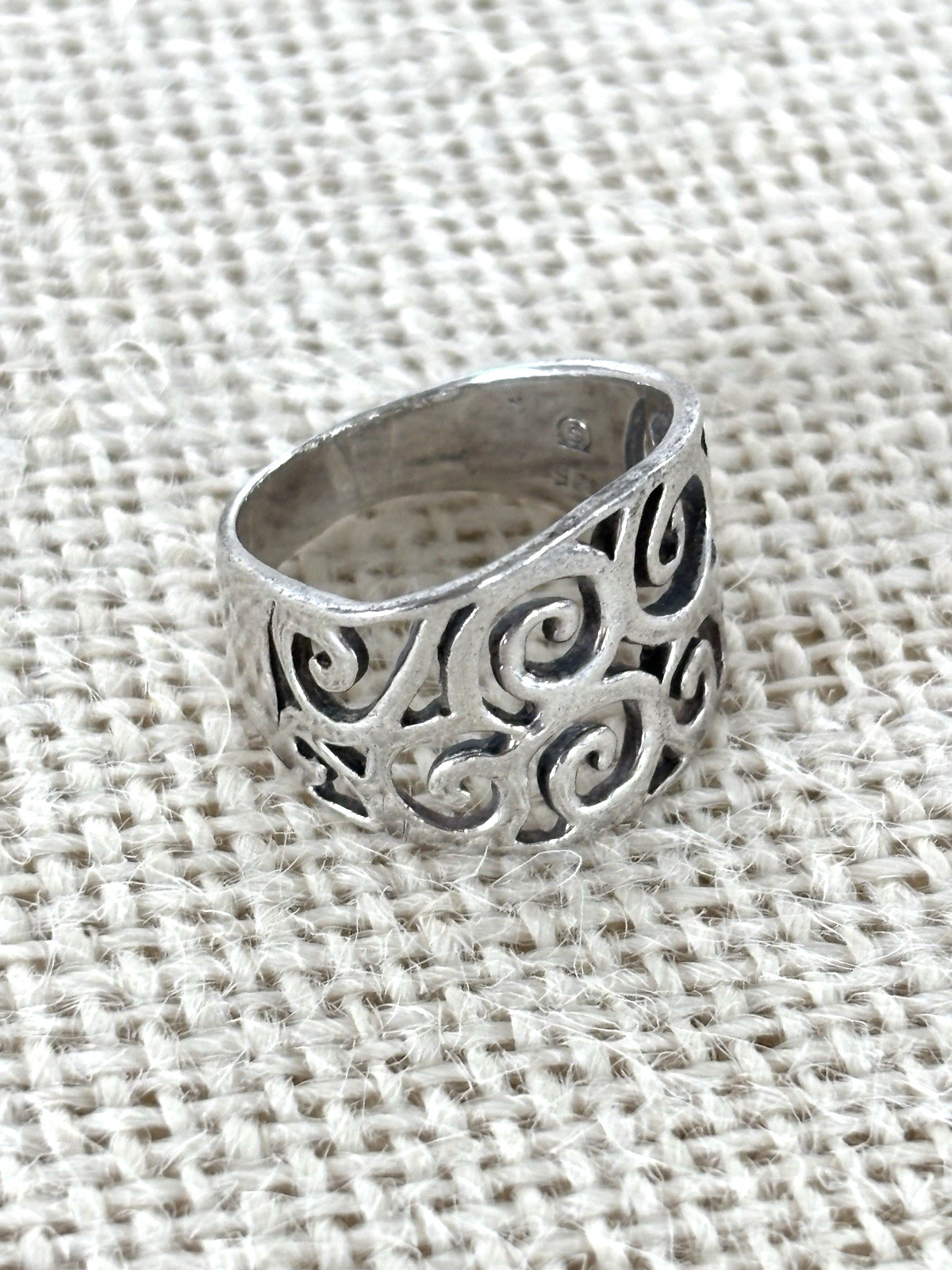 как выглядит Vtg Hallmark Sterling Silver Scrollwork Design Filigree Graduated Band Ring Sz 8 фото