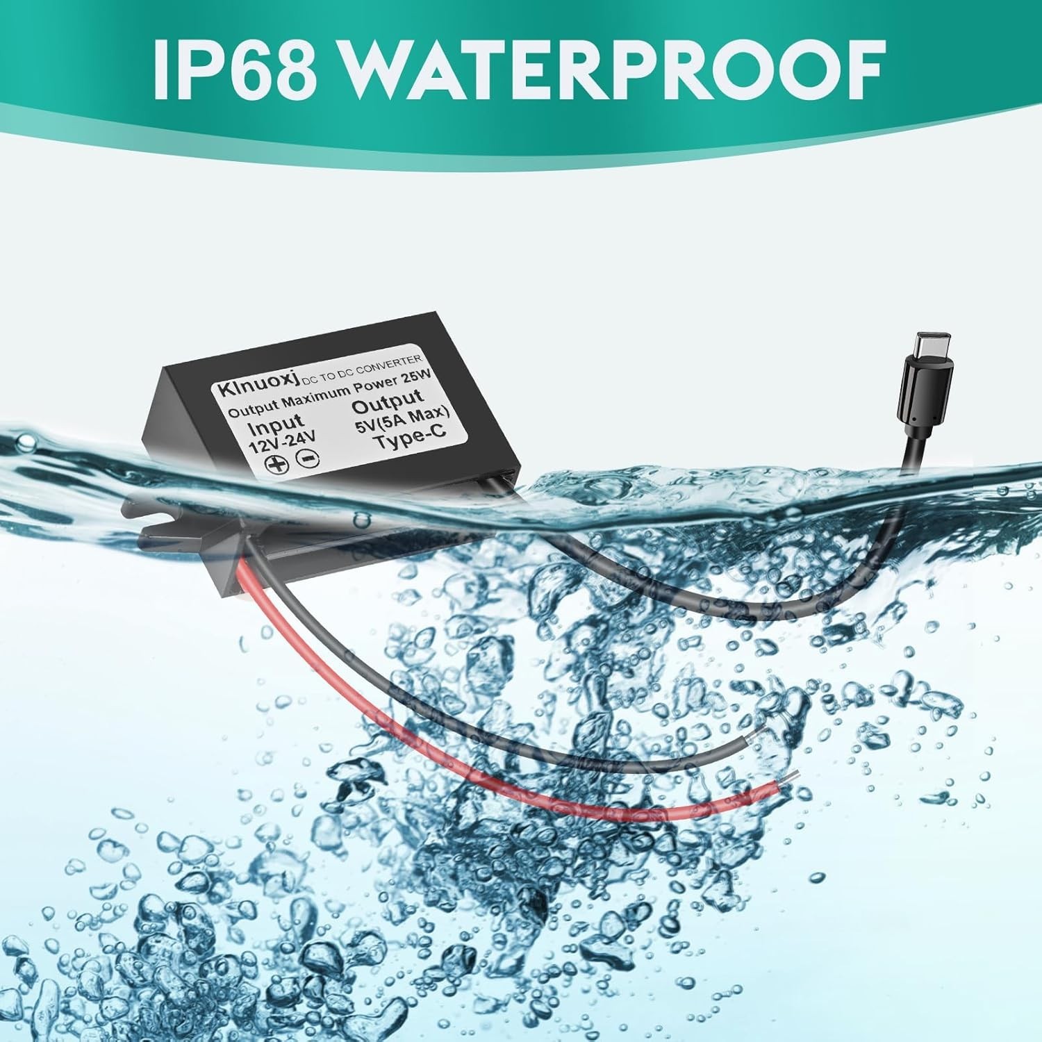 как выглядит DC 12V/24V to 5V USB C Step Down Converter Type-C Interface 5A 25W Waterproof. фото