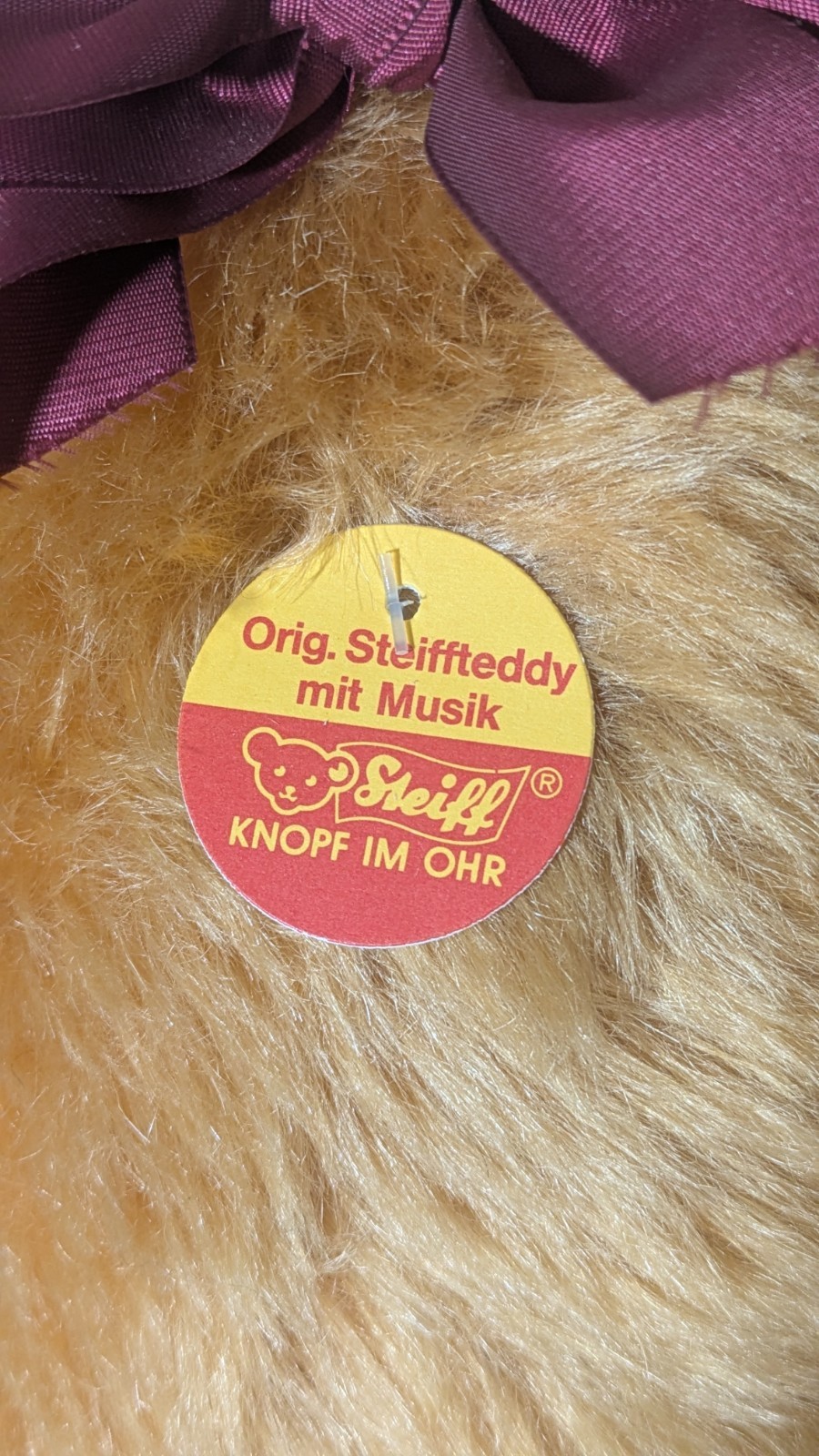 VINTAGE STEIFF MUSICAL TEDDY BEAR 011214 Love Story Mohair 15 Germany W/ Tags