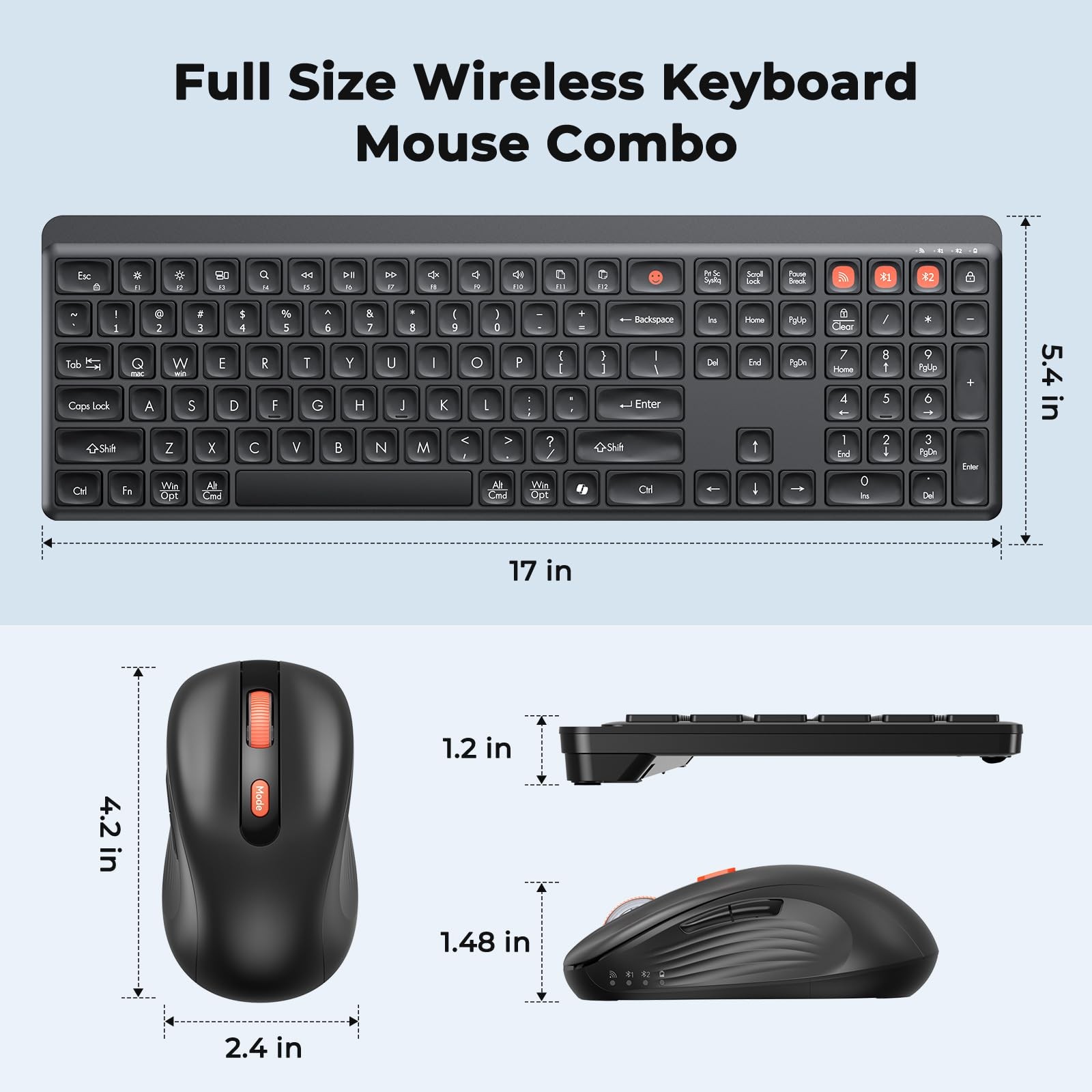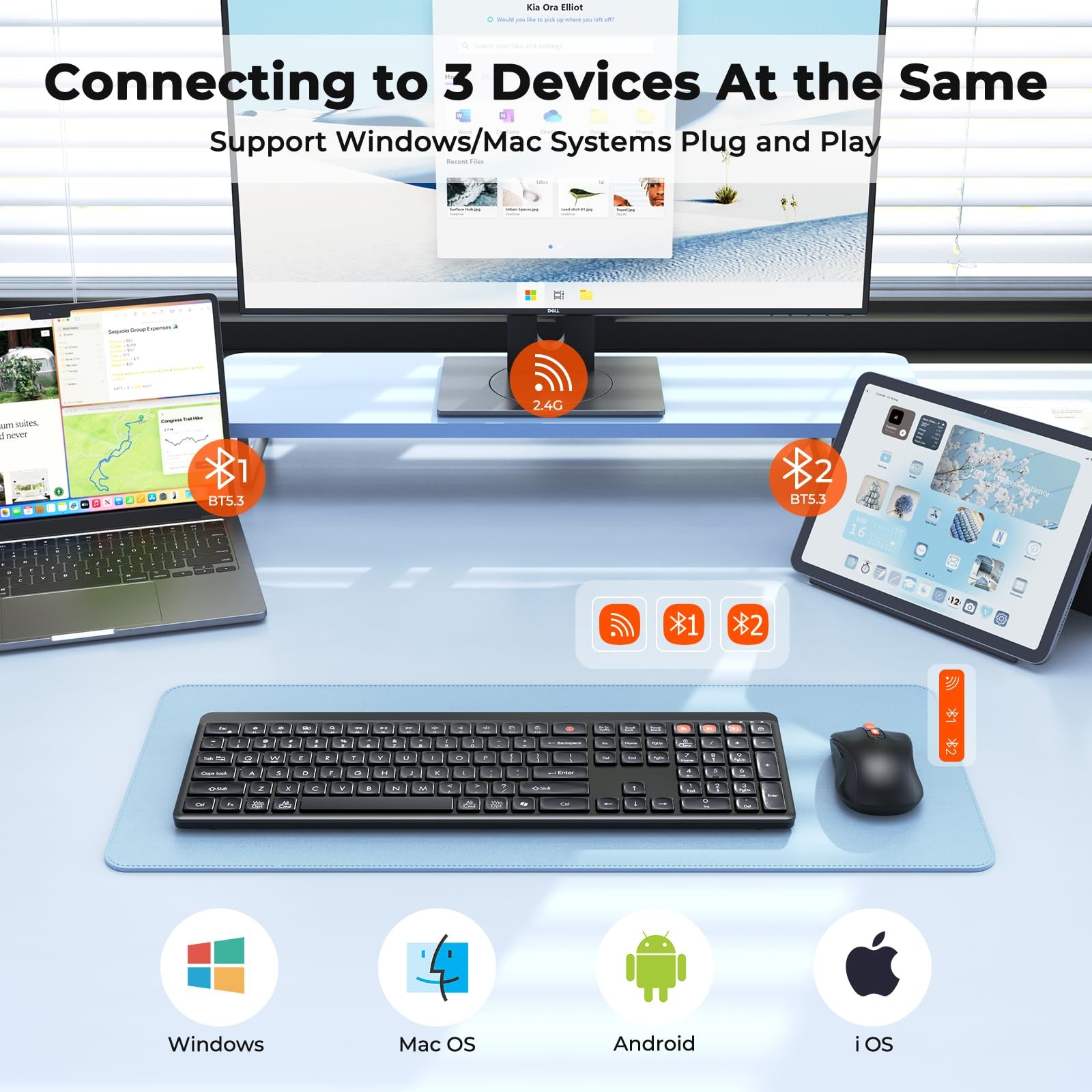 Bluetooth Keyboard and Mouse, 2.4G Dual Bluetooth Multi Device, Full Size S...