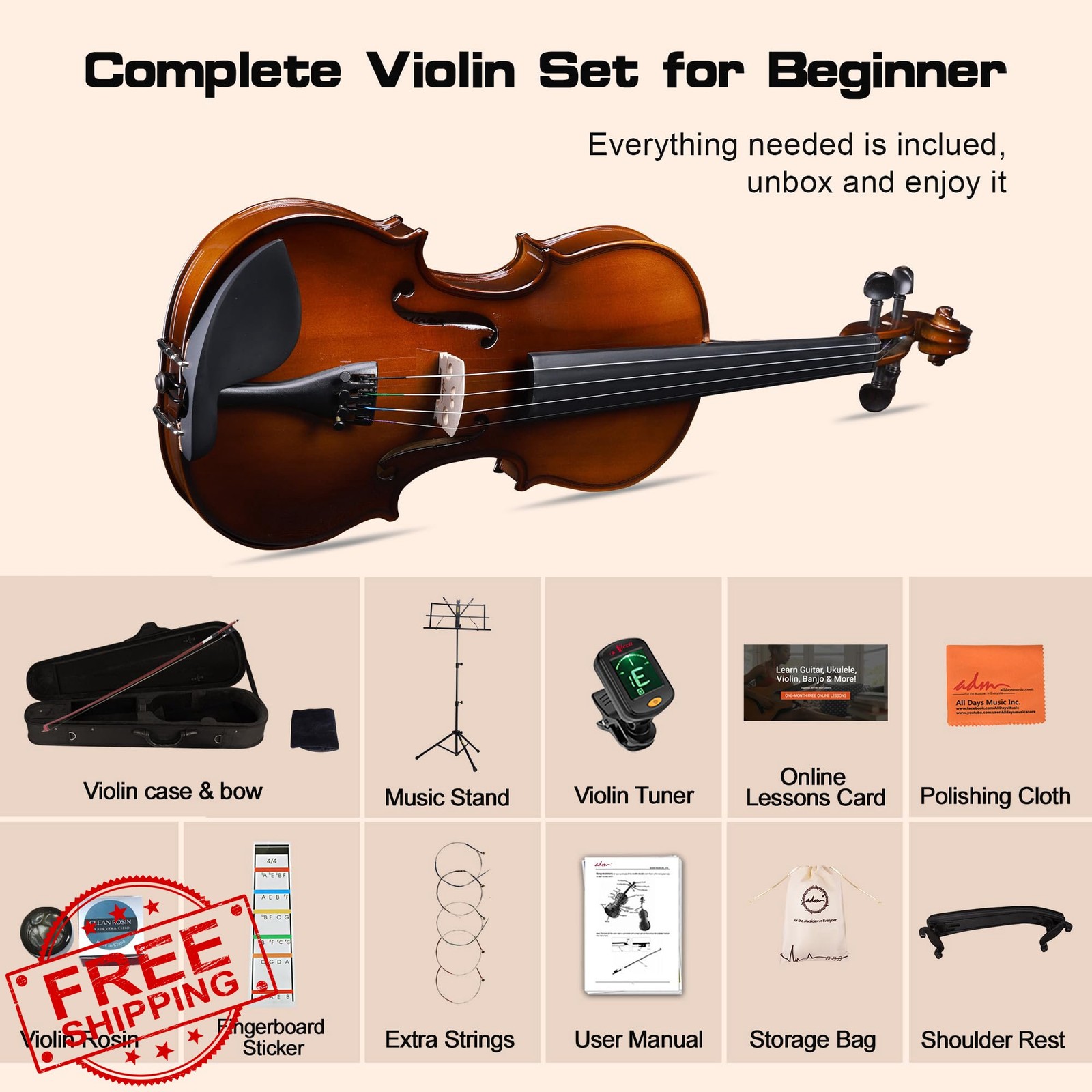 как выглядит ADM Acoustic Violin for Beginner 4/4 Full Size Violin Set Solid Wood for Adul... фото