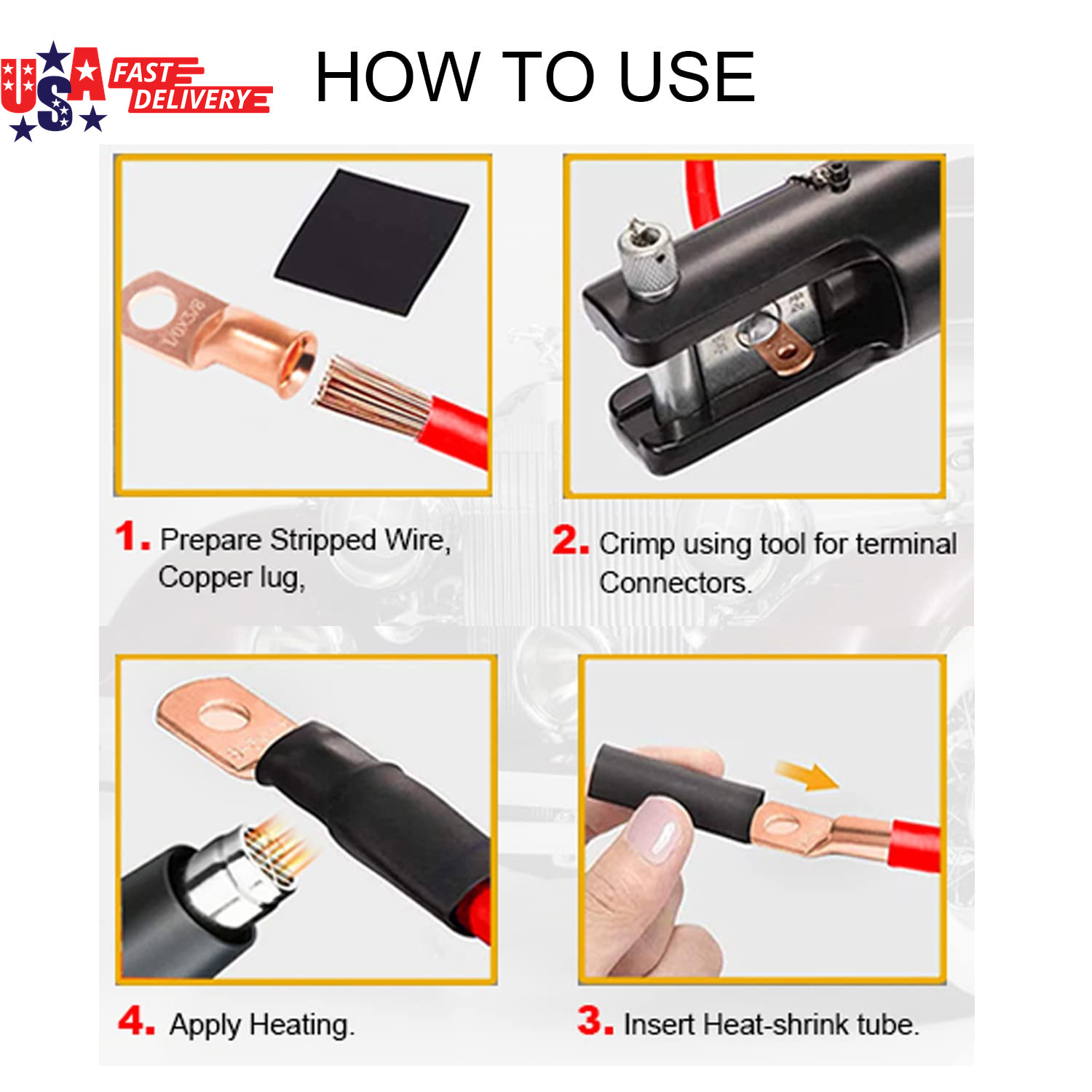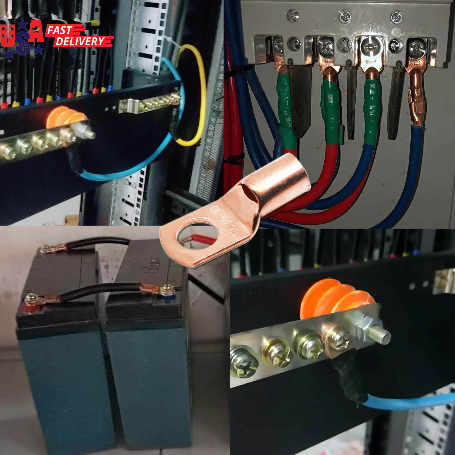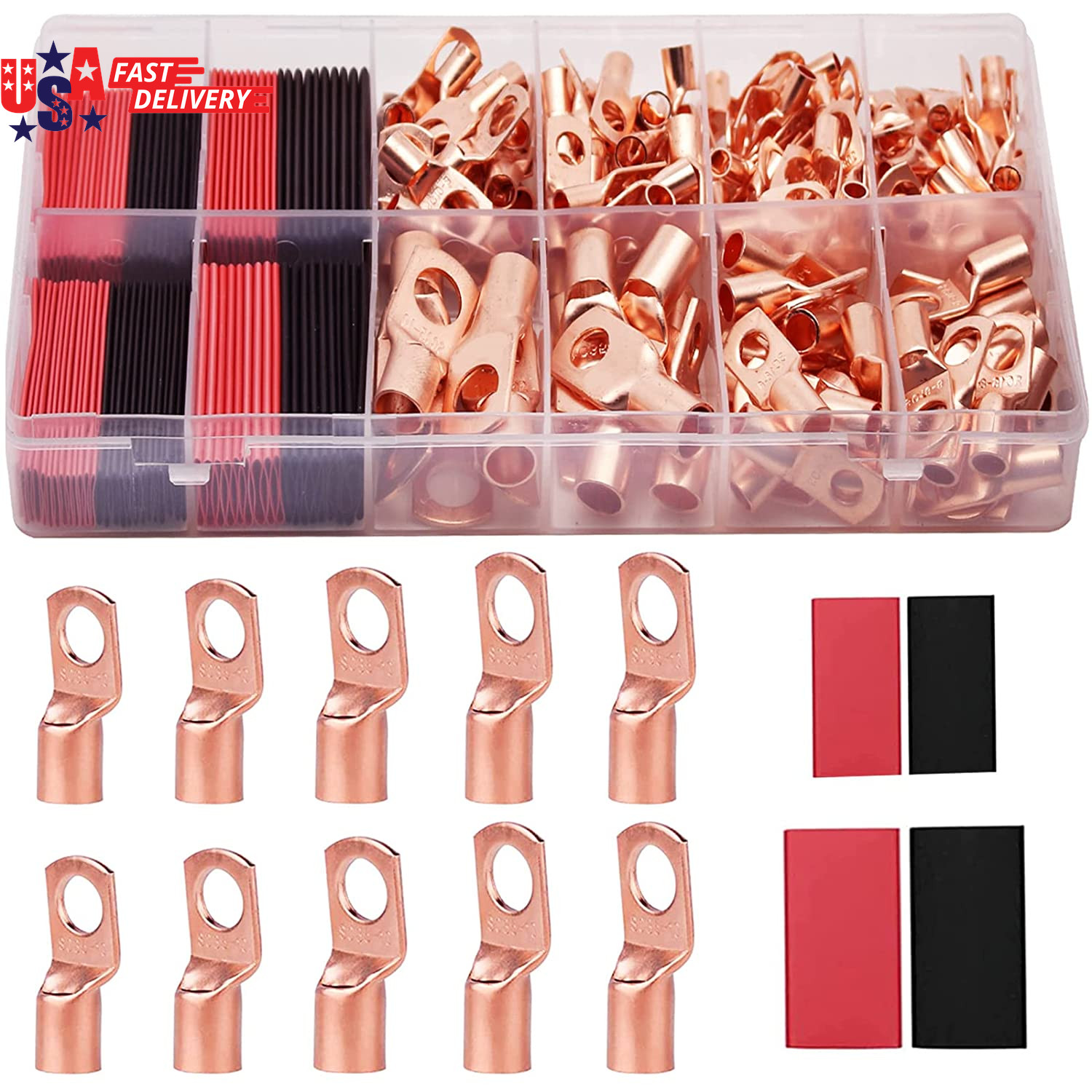 160Pcs Copper Wire Lugs AWG 2 4 6 8 10 12 Kit Battery Cable Ends Ring Terminals