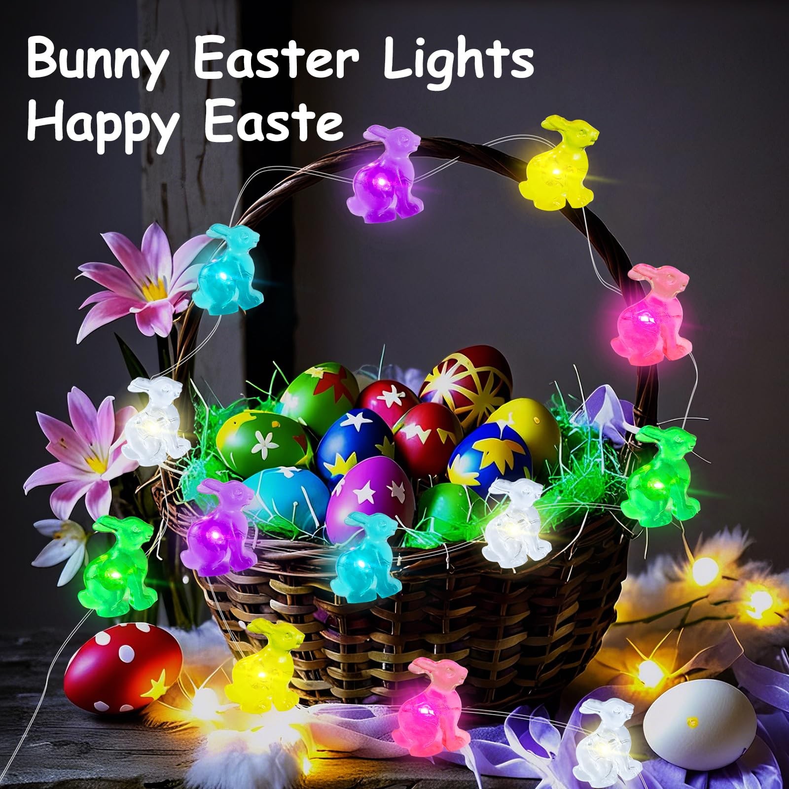 Easter Decorative String Lights 2 Pack, 16FT 50LED Colorful Bunny Fairy Light...