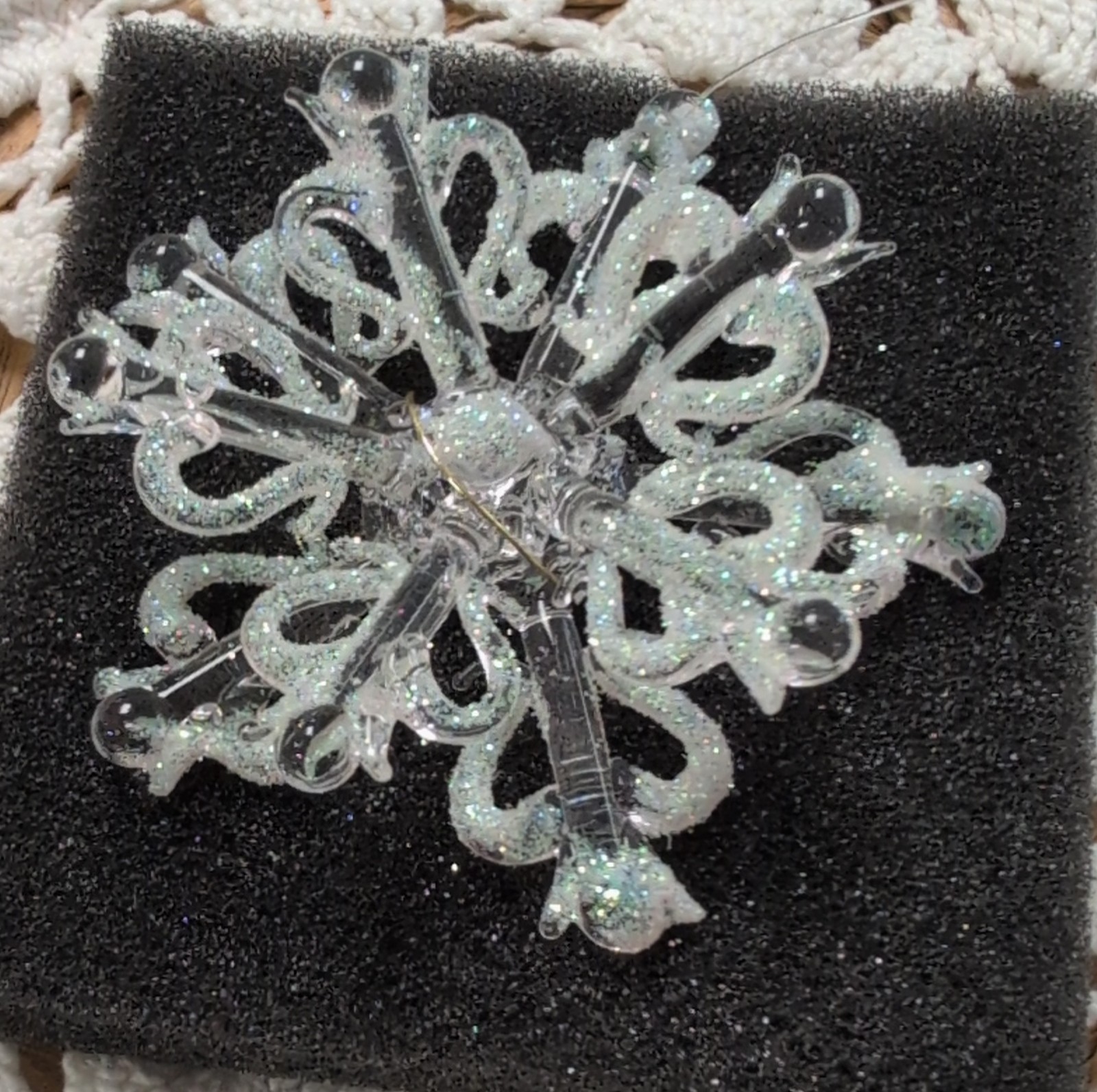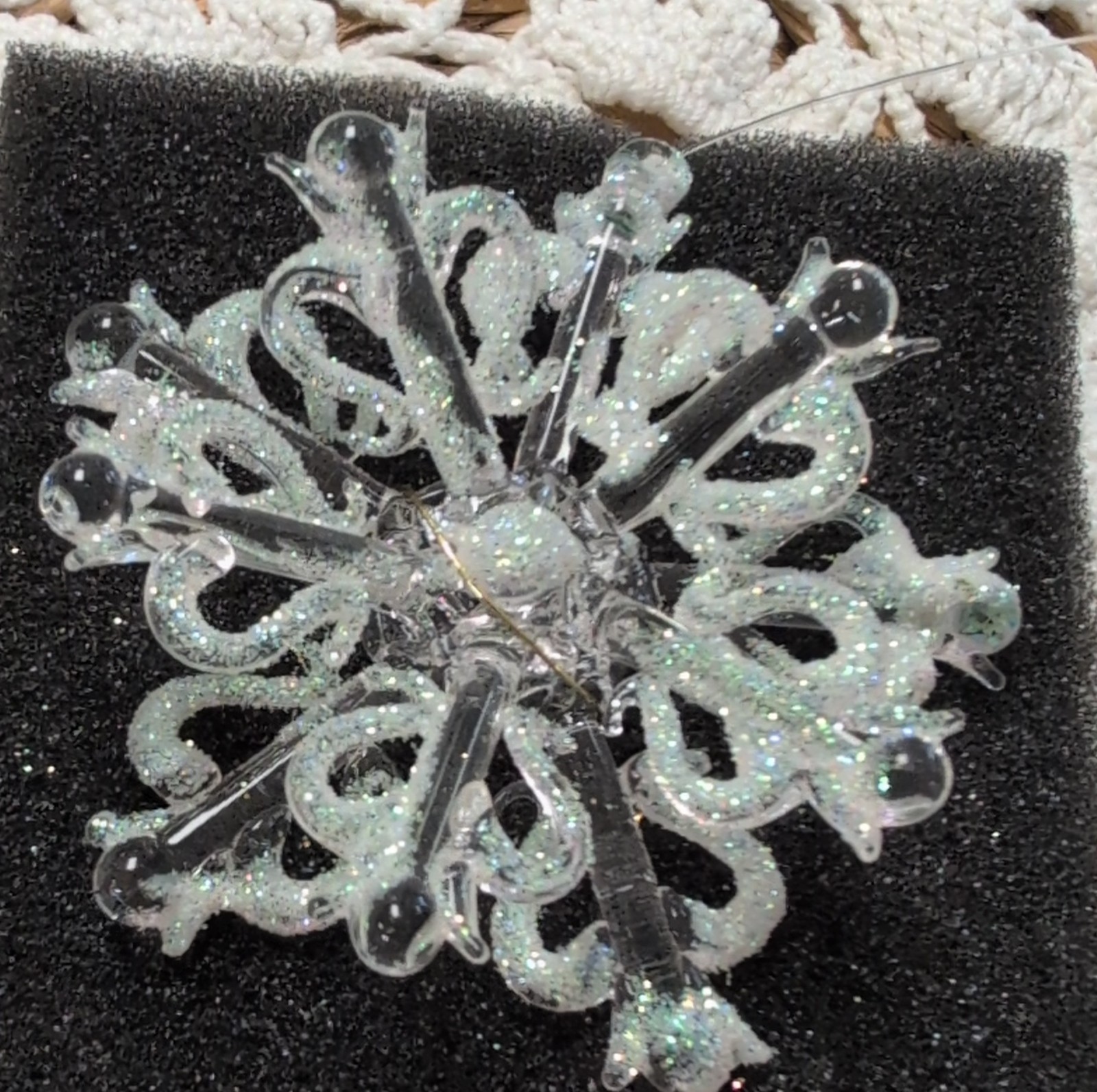 • Blown Glittered Glass Snowflake Ornament