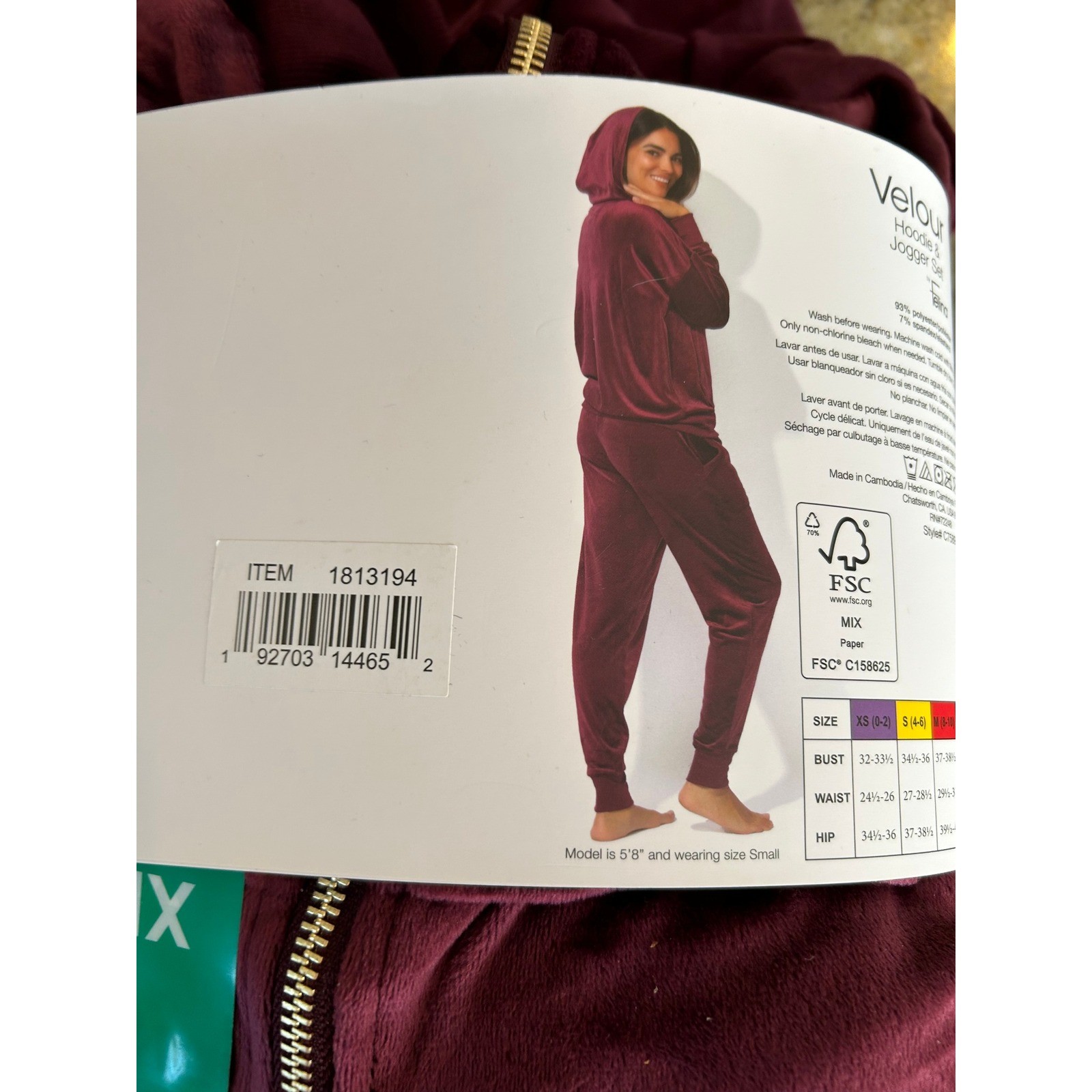 как выглядит NWT Felina Womens Velour Hoodie Jogger Set Burgundy Wine 2-Piece Lounge Set XL фото