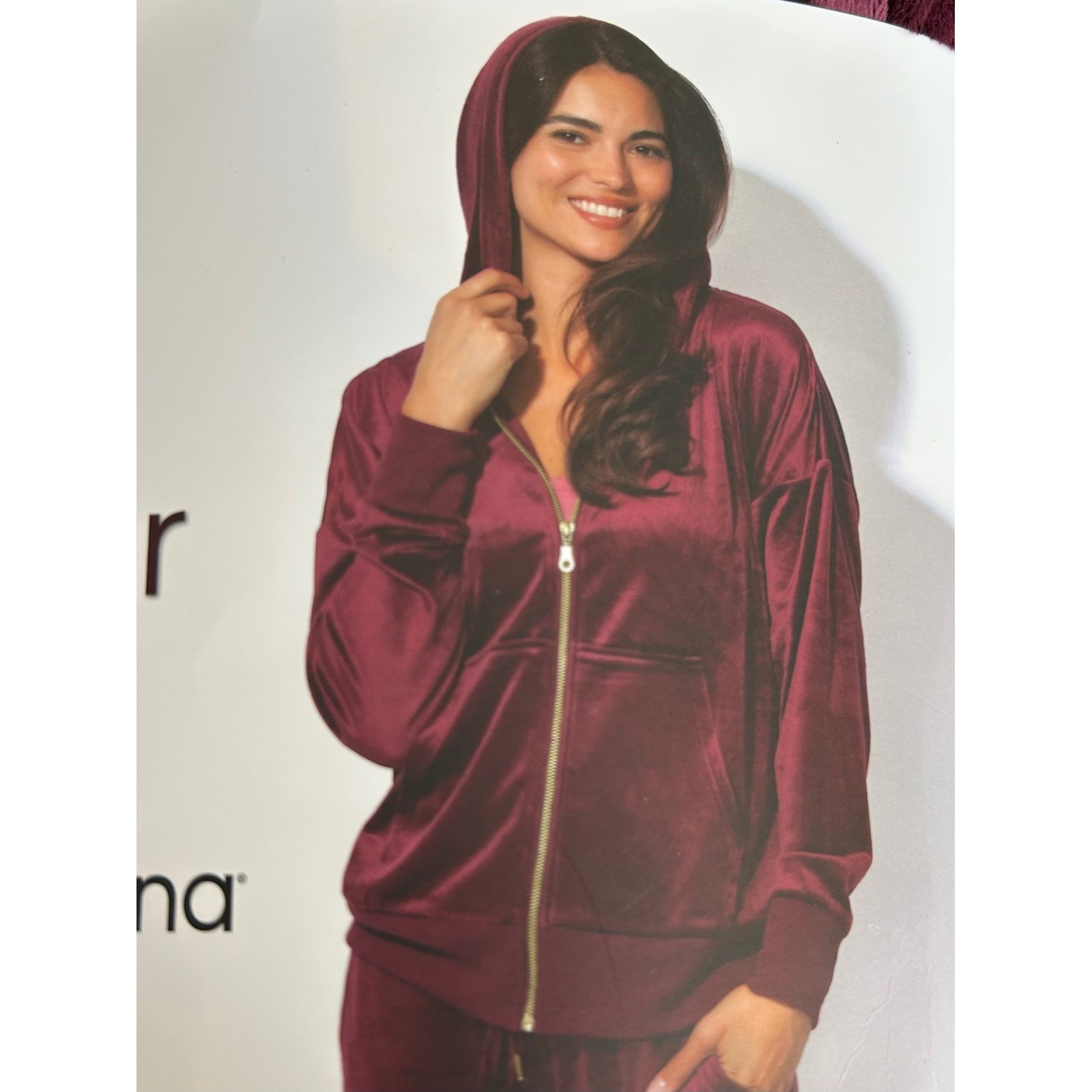 NWT Felina Womens Velour Hoodie Jogger Set Burgundy Wine 2-Piece Lounge Set XL
