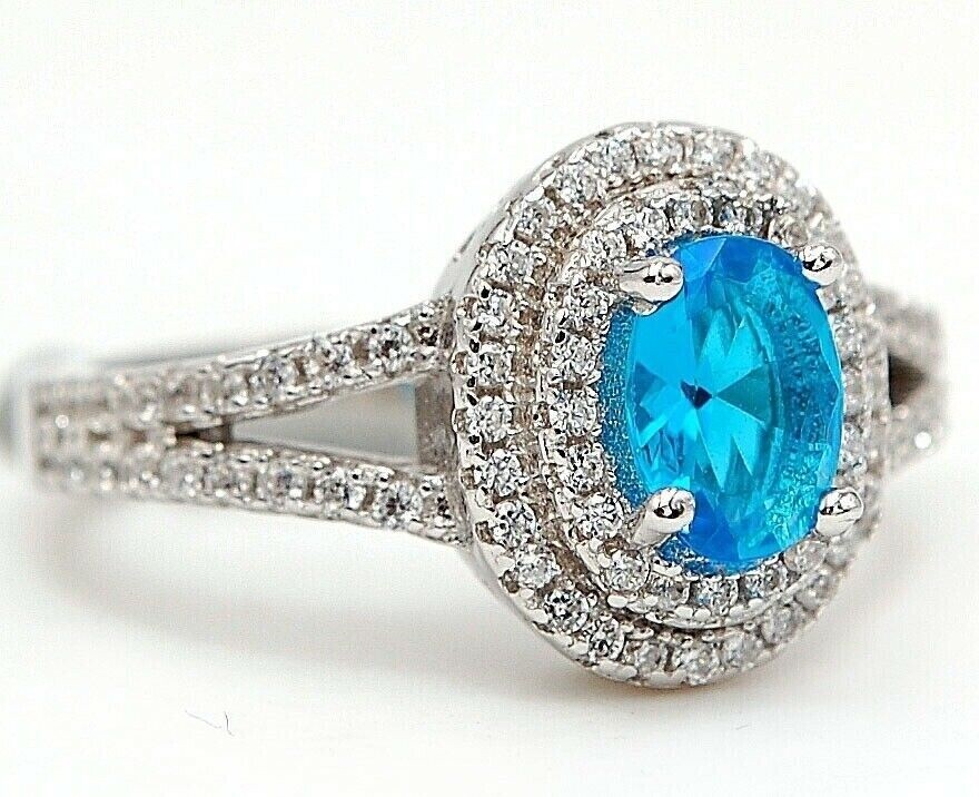 как выглядит 2CT Blue Topaz Topaz 925 Solid Sterling Silver Ring Jewelry Sz 9 NB2-5 фото