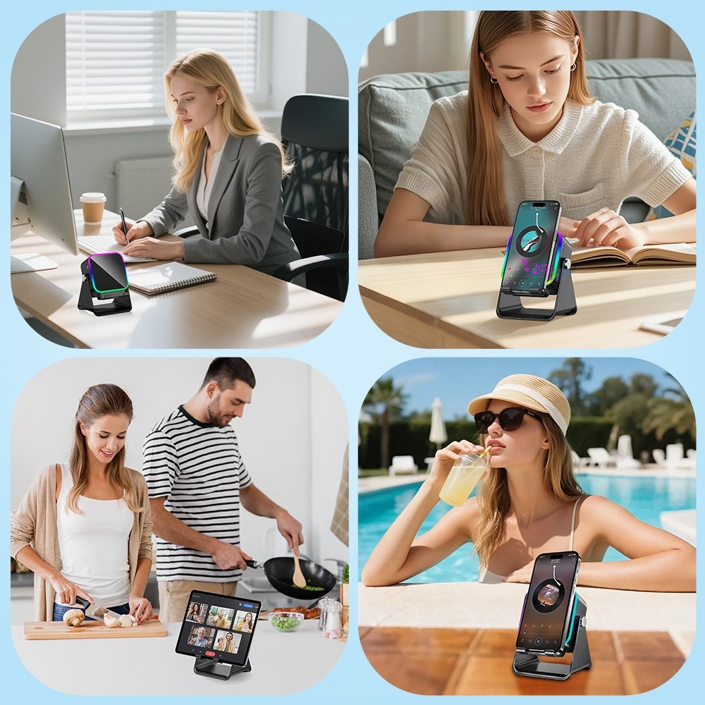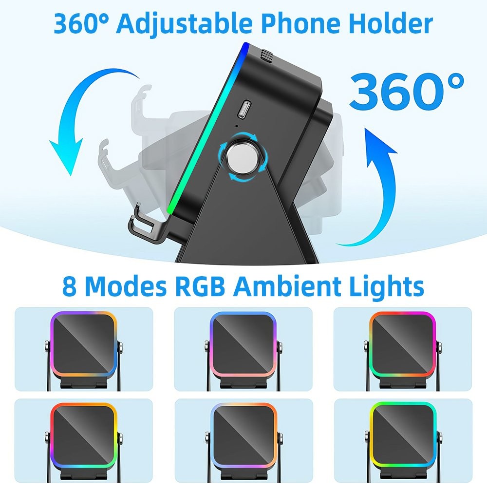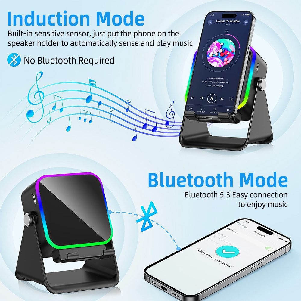 RGB Wireless Induction Speaker 5 in 1 Bluetooth Speaker Phone Stand USB Charger