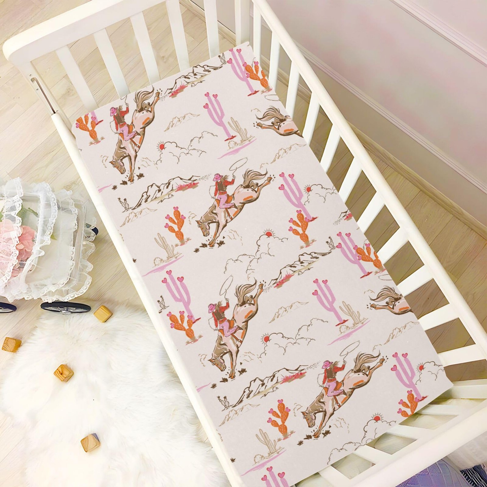 Cowgirl Western Crib Sheets Soft Breathable Fitted Baby Crib Sheets Mattress ...