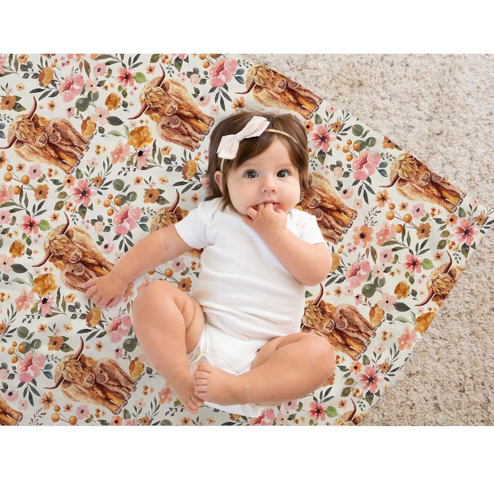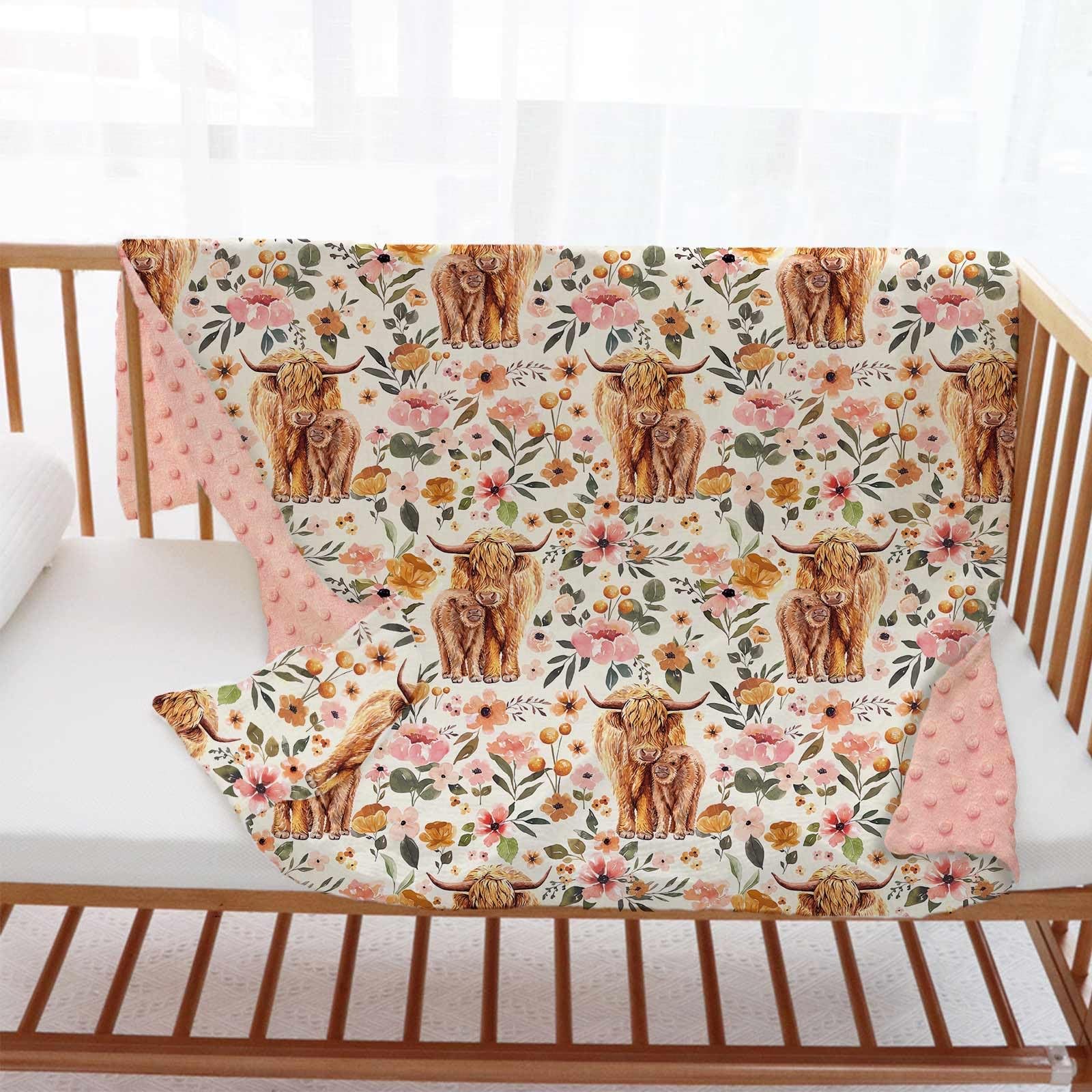 Highland Cow Baby Blanket for Girls, Boho Floral Farmhouse Highland Cow Soft ...