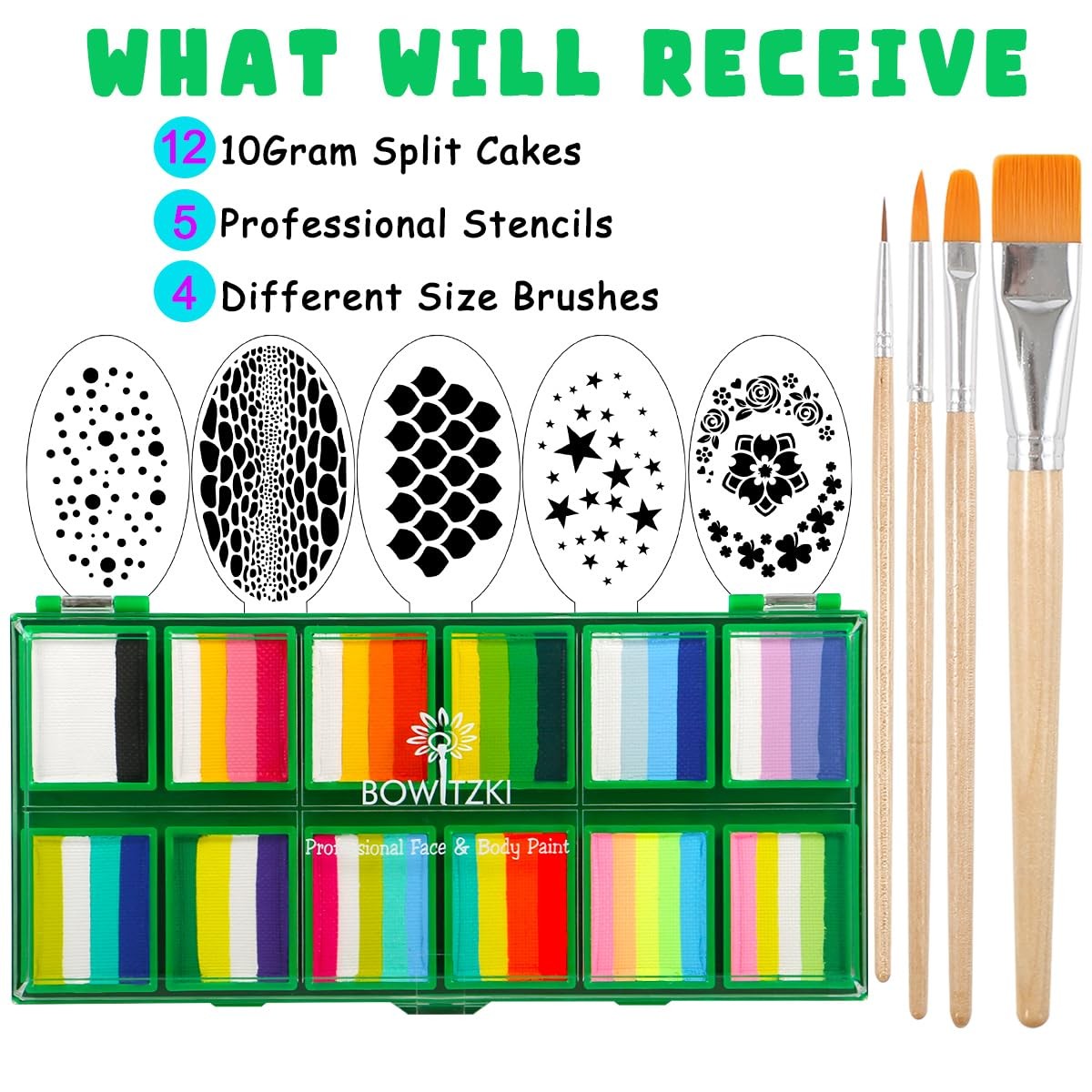 Face Paint 12x10 gm Professional Body Painting Kit For Adults Stencil One Str...