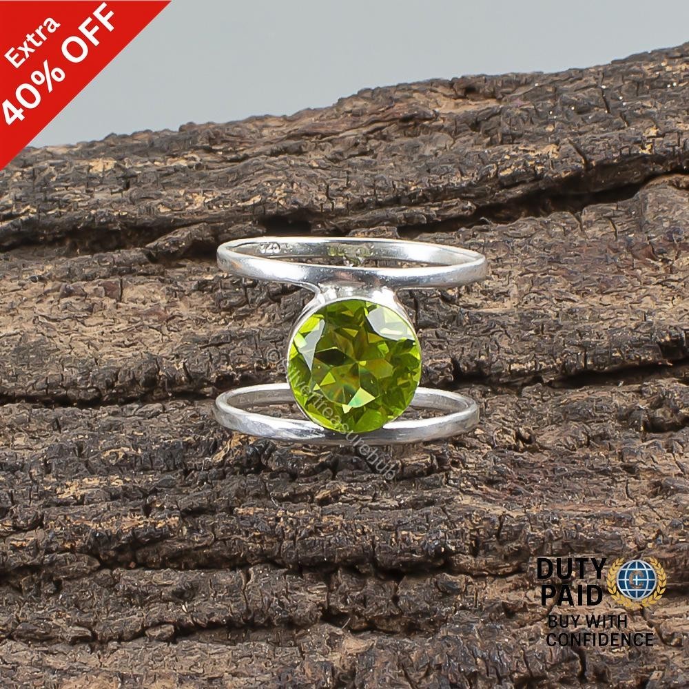 Peridot Stone 925 Sterling Silver Statement Wife Band Wedding August Birth Ring