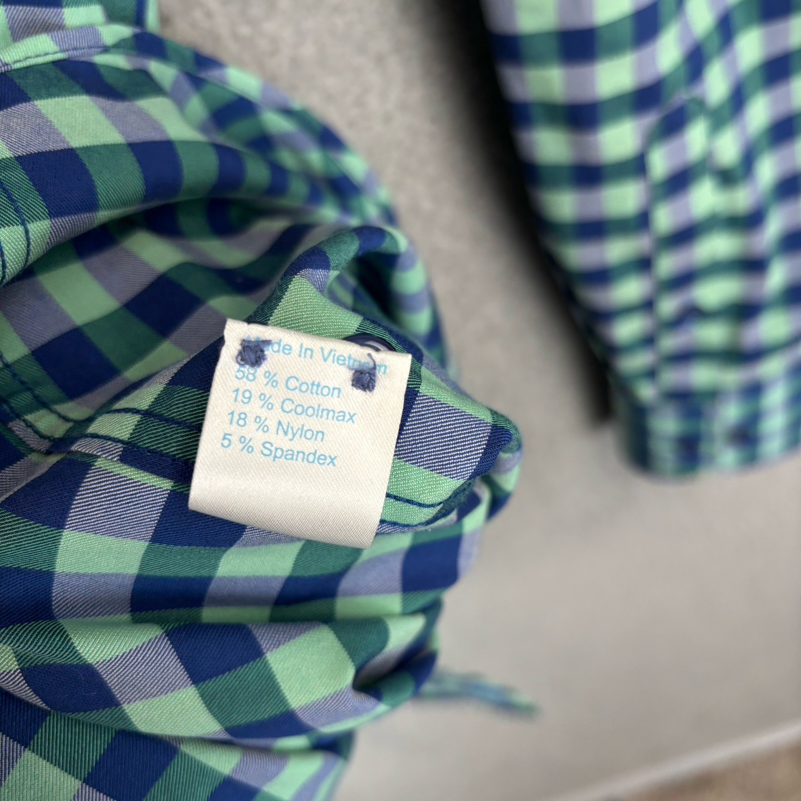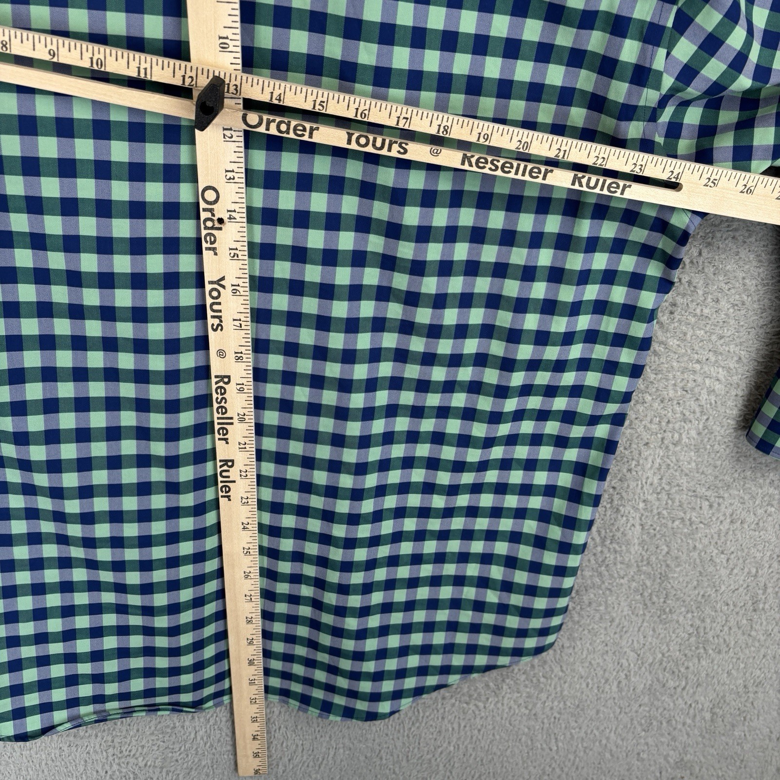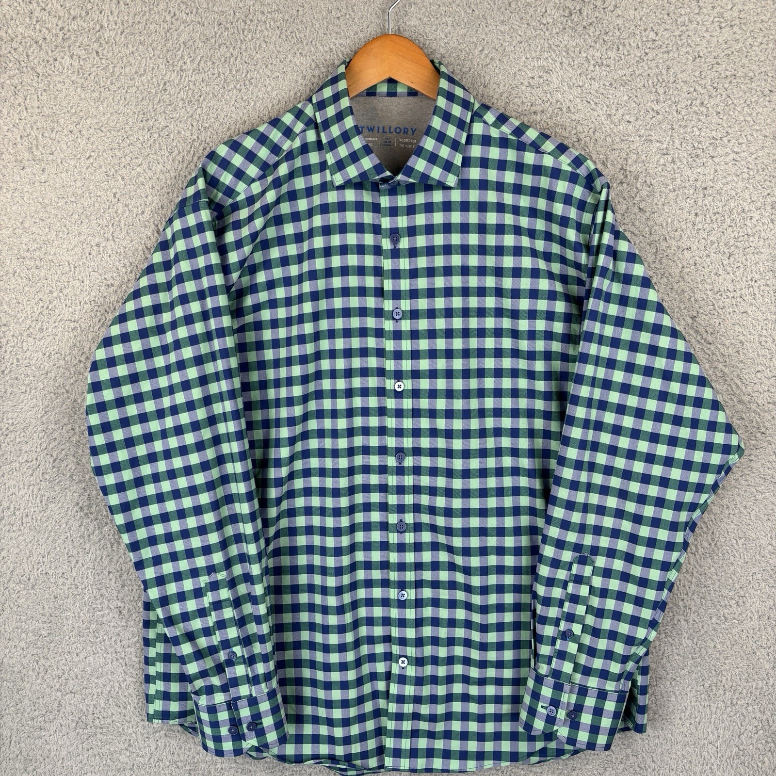 как выглядит TWILLORY Performance Button Shirt Mens 17.5 34-35 Green Blue Check Stretch фото