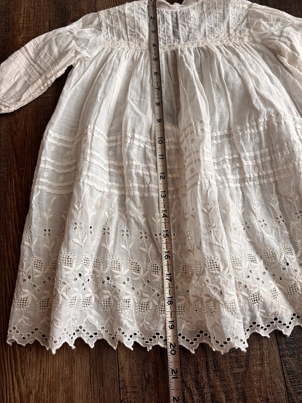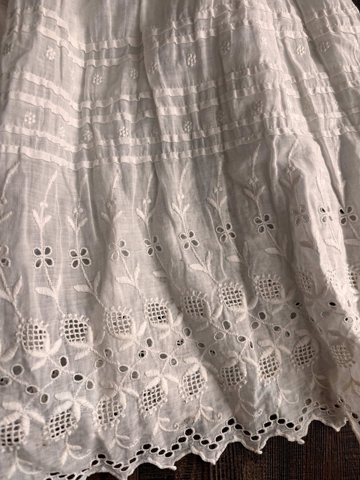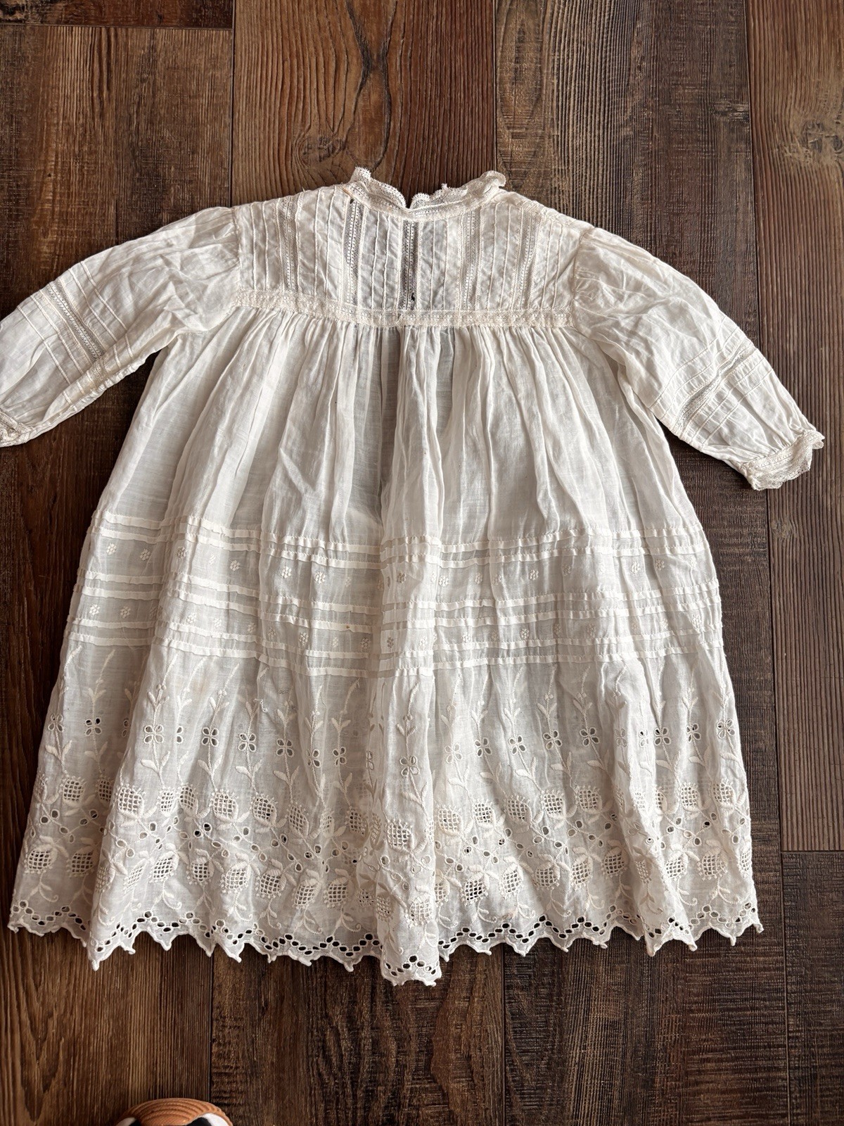 ANTIQUE WHITE BAPTISM CHRISTENING GOWN BABY DOLL DRESS COTTON LACE broderie