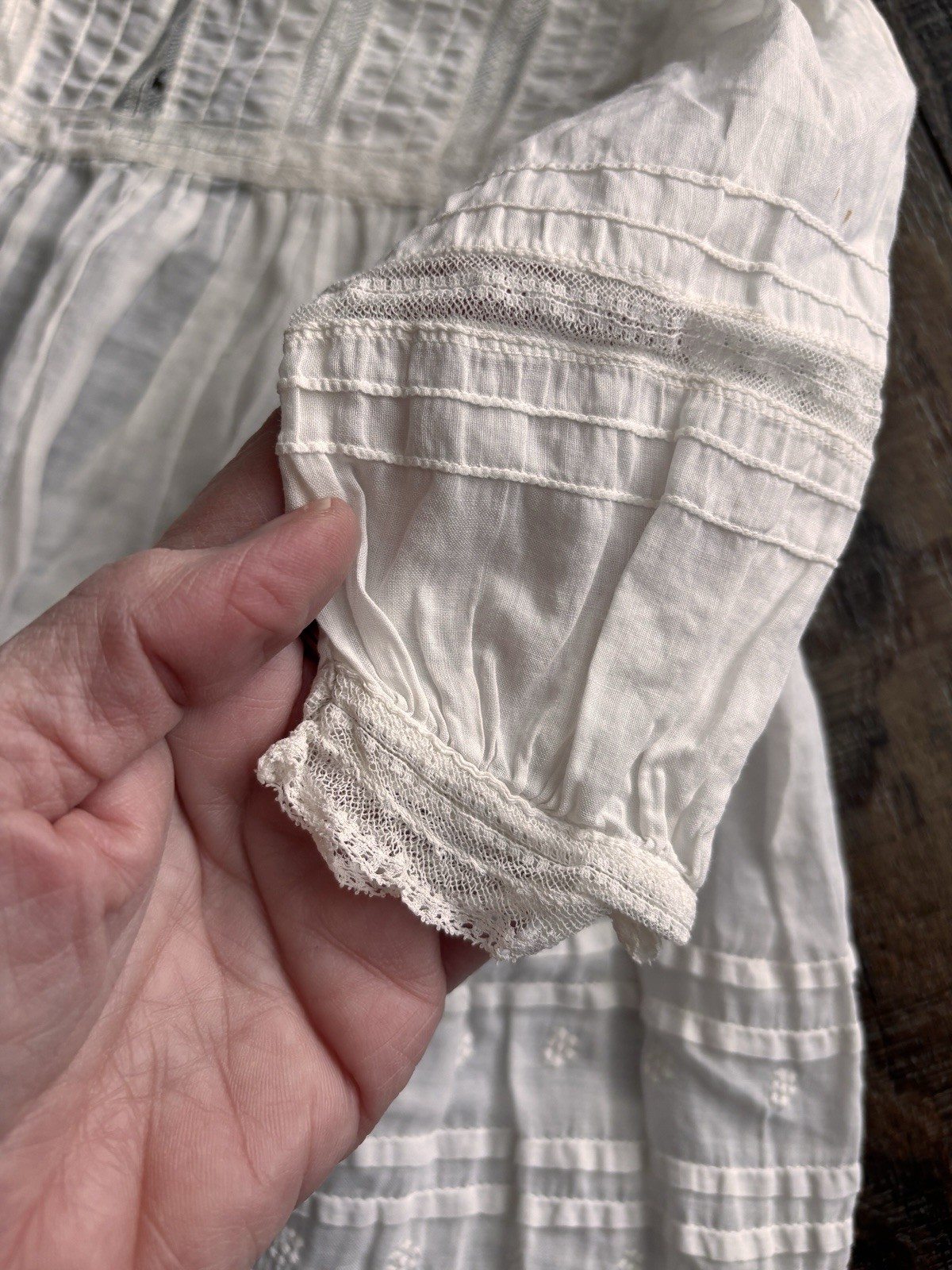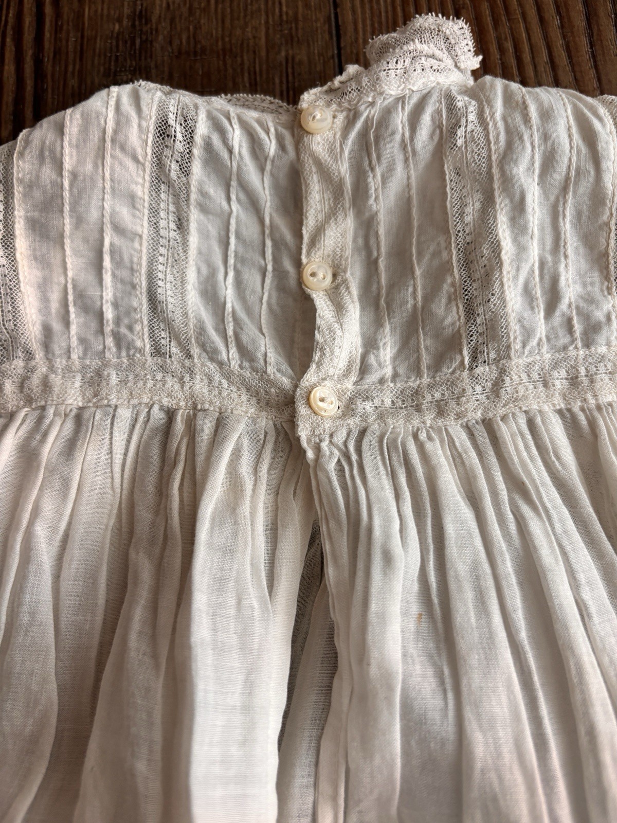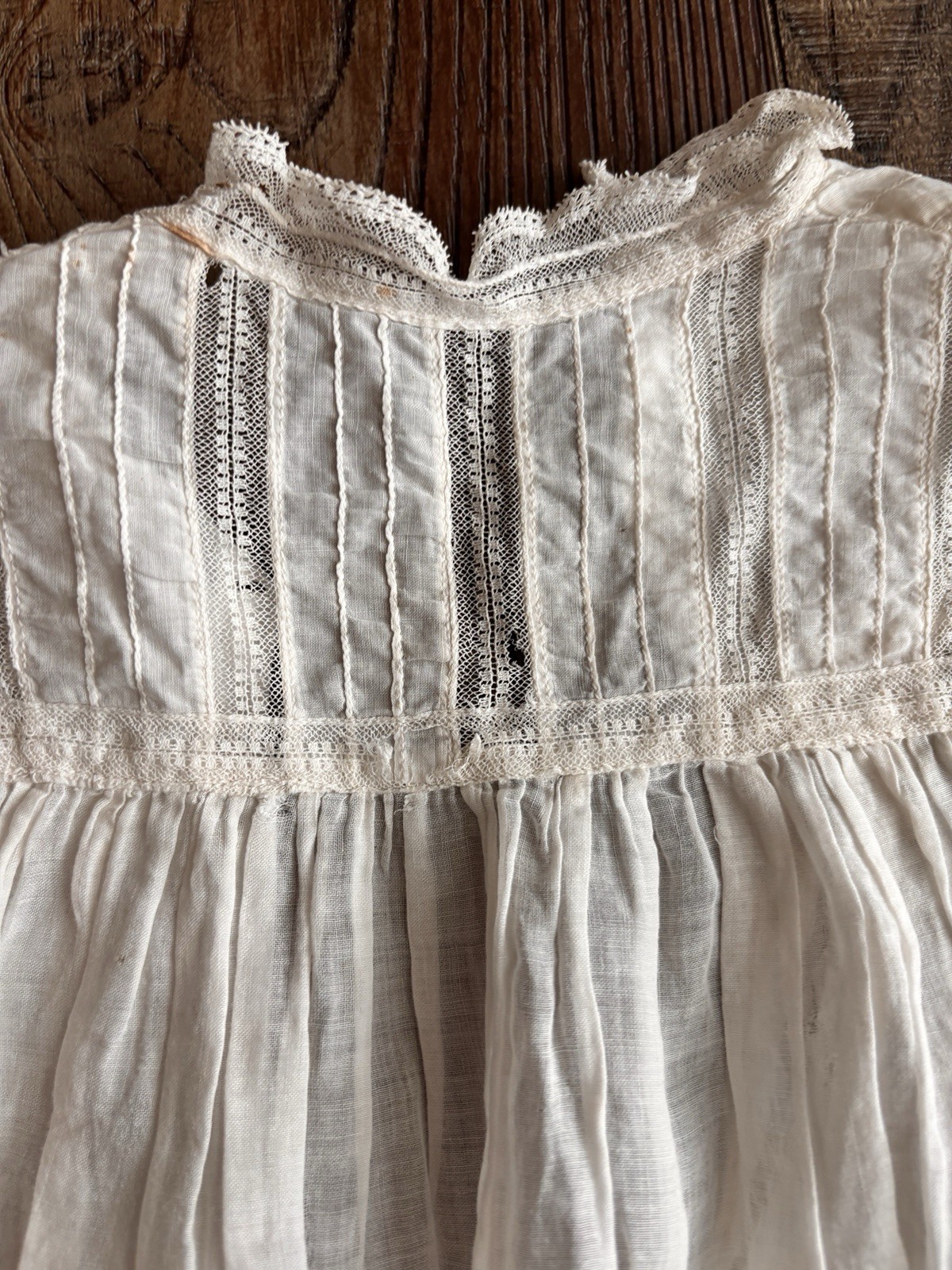 ANTIQUE WHITE BAPTISM CHRISTENING GOWN BABY DOLL DRESS COTTON LACE broderie