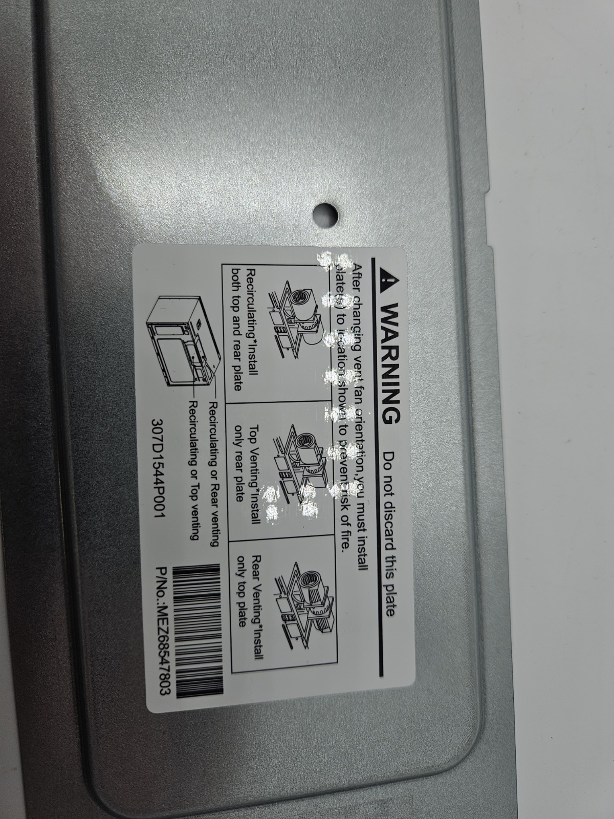 GE MICROWAVE SAFETY COVER MEZ68547803 FOR MODEL: JVM3160DF8WW