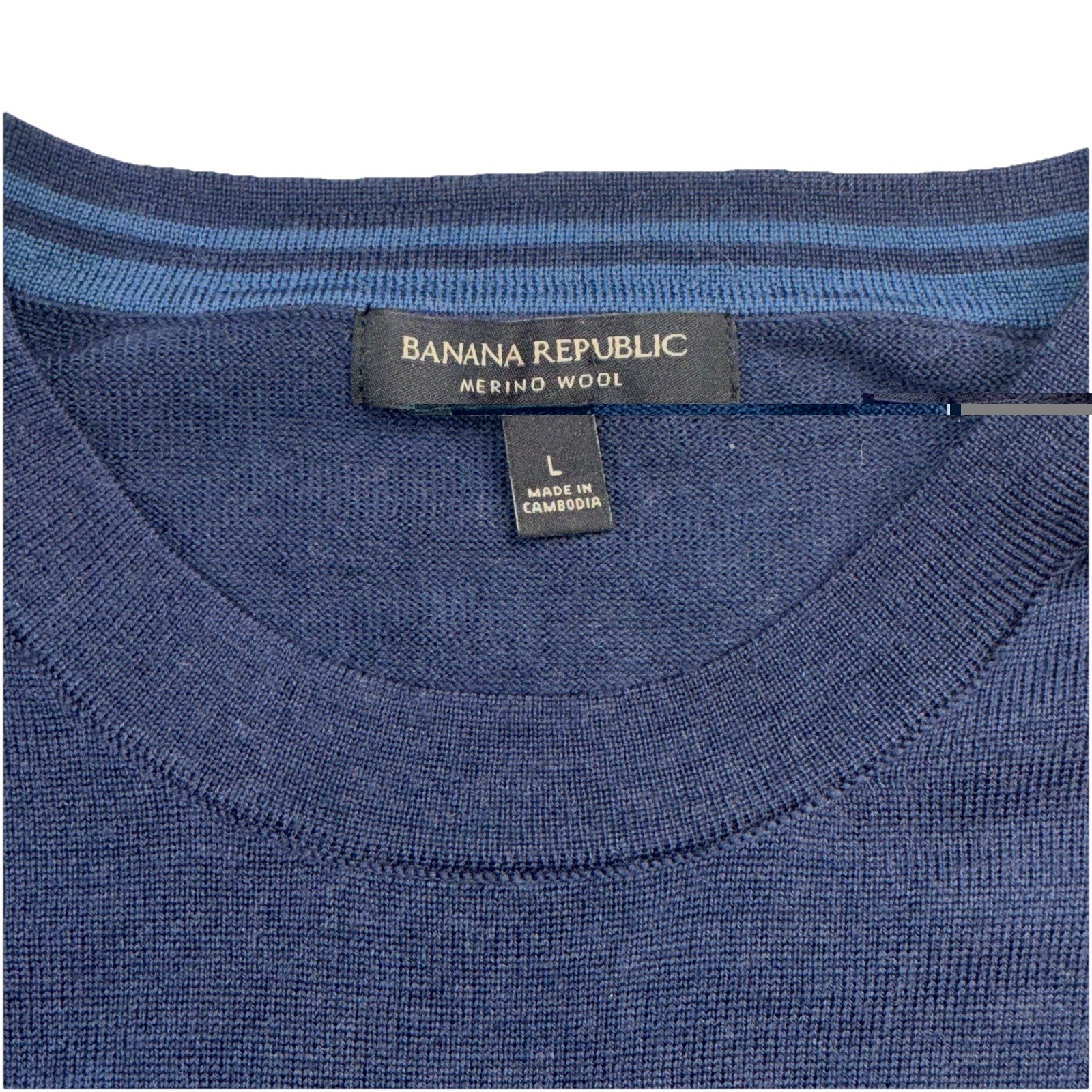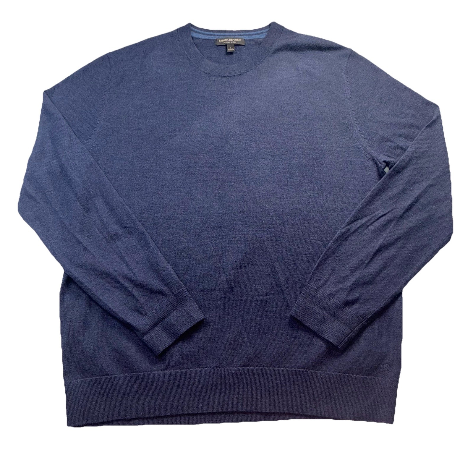 как выглядит Banana Republic Mens 100 Merino Wool Navy Blue Crew Neck Sweater Large Classic фото