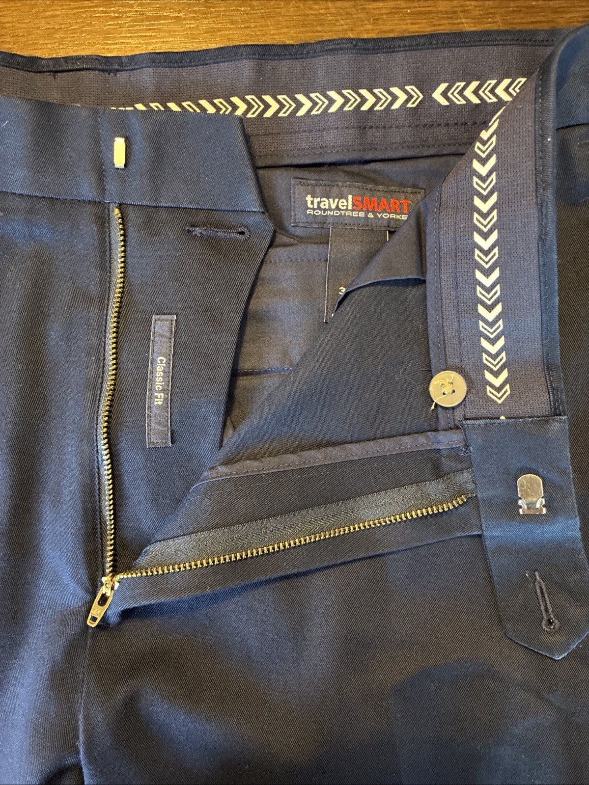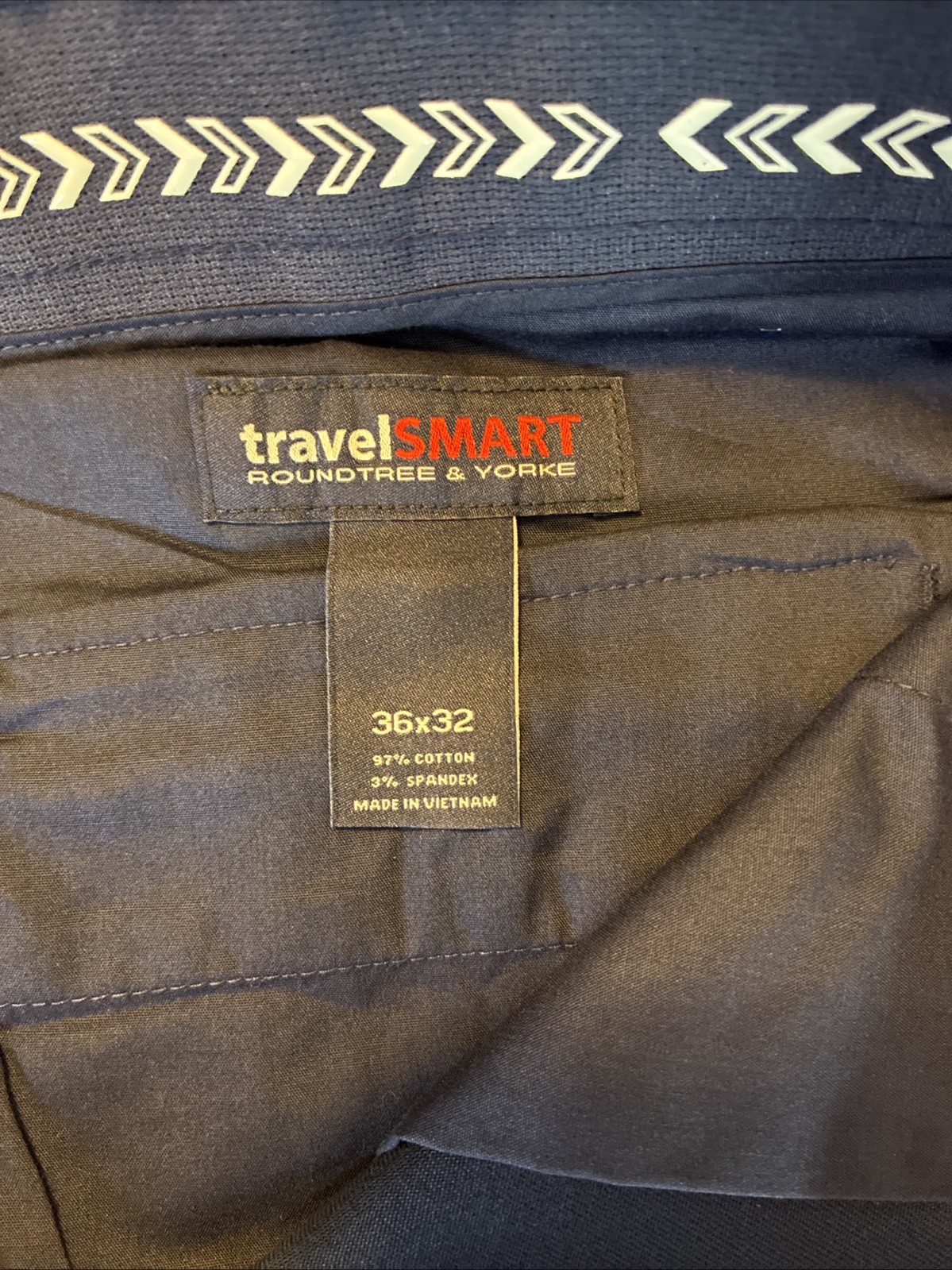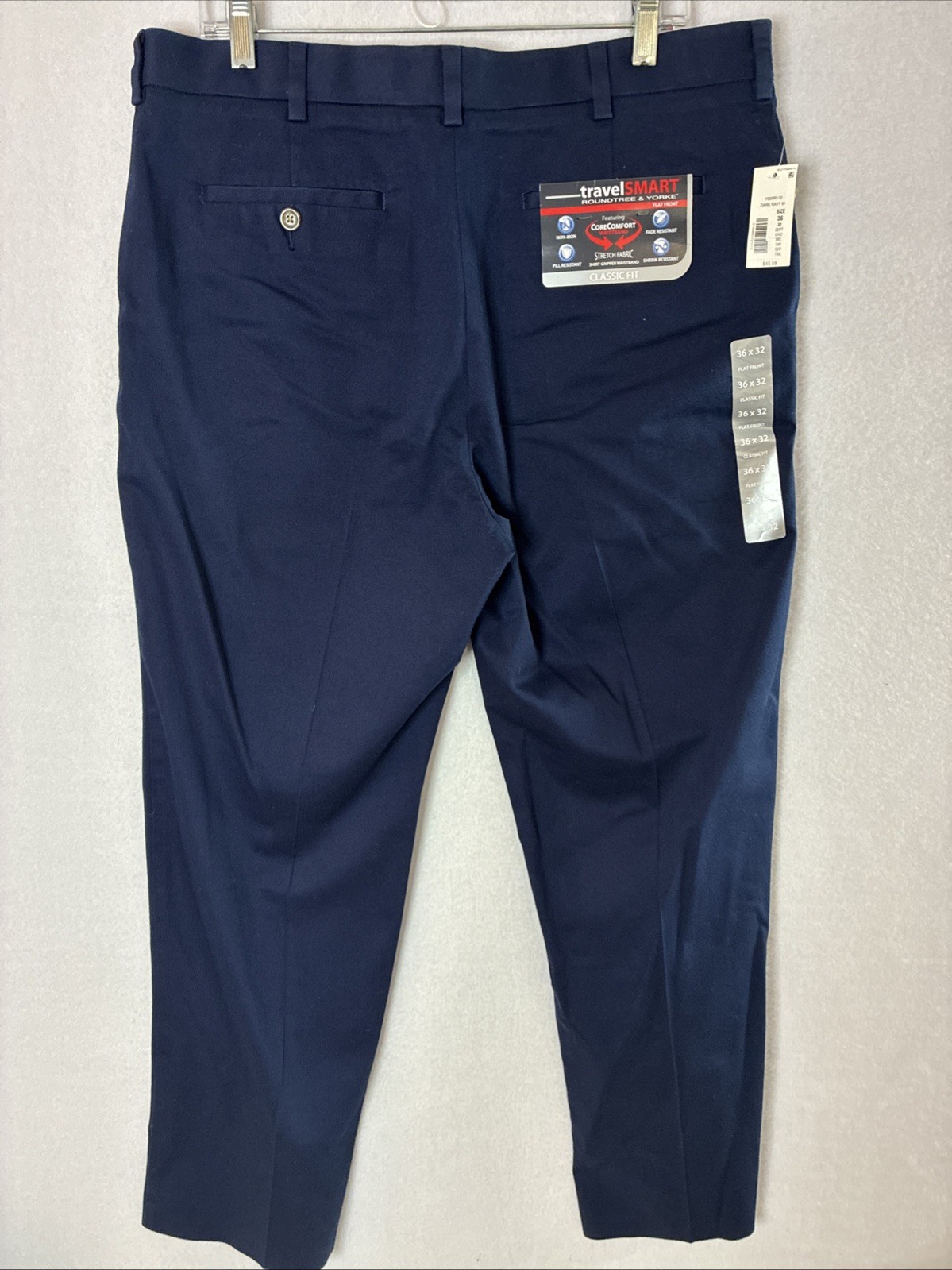 NWT ROUNDTREE YORKE Men s travelSMART Classic Pants 36x32 Navy Blue Flat Front