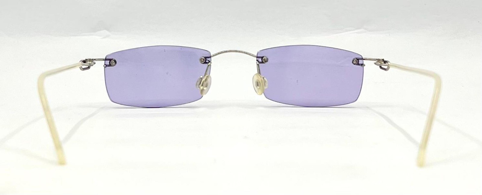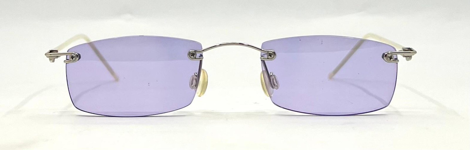 Rimless Sunglasses Silver Metal Frame Solid Lavender Lense Unworn Vintage