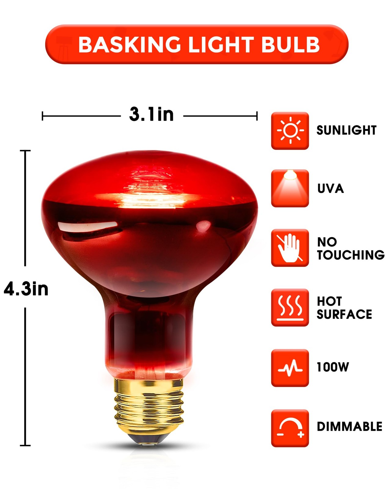 100W Reptile RED Heat Lamp Bulbs, Reptile Amphibian Basking 100W-2 Pack Red