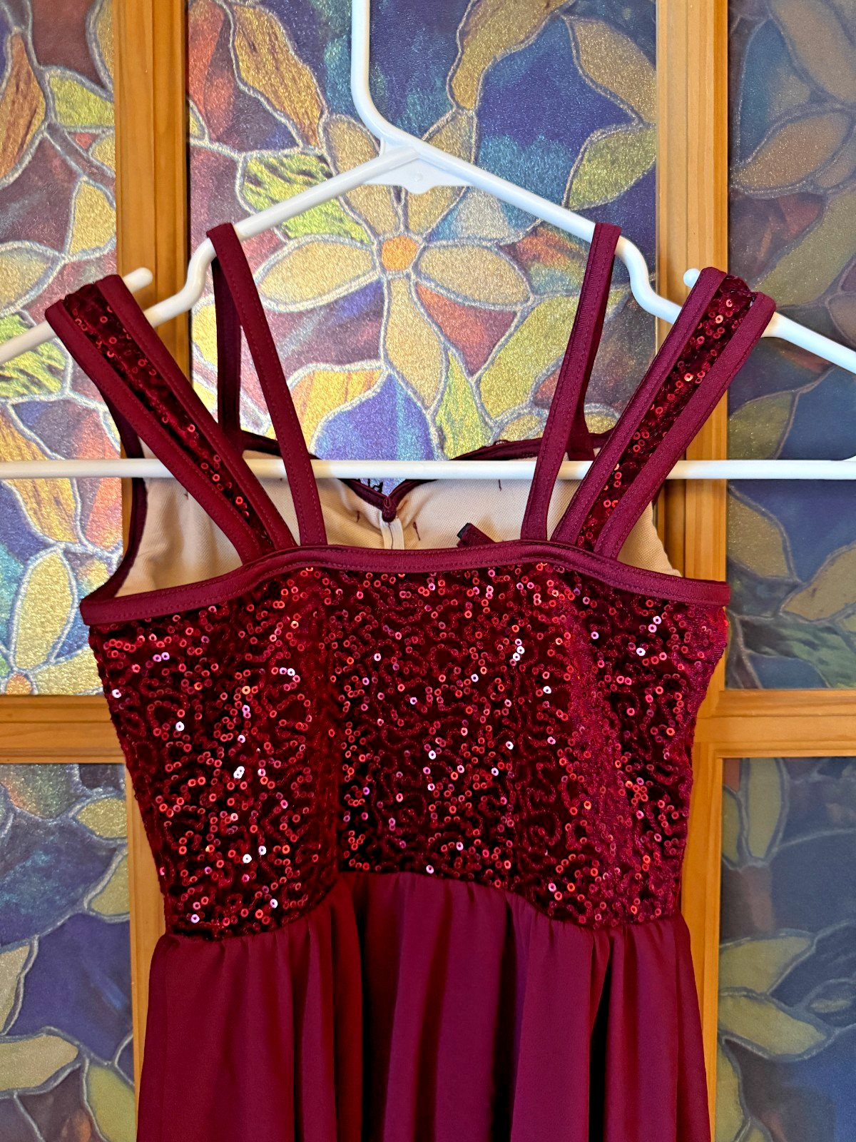 Weissman Dance Recital Ballet Dress Costume Size IC Burgundy Sequins Velvet 7/8