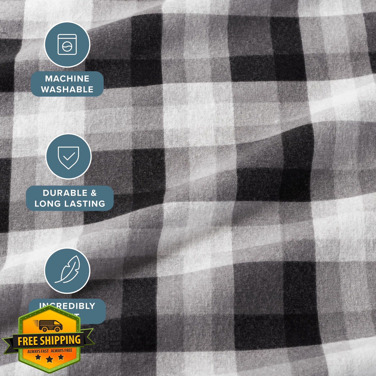 как выглядит Bare Home King Oliver Plaid Flannel Sheet Set Cotton Grey фото