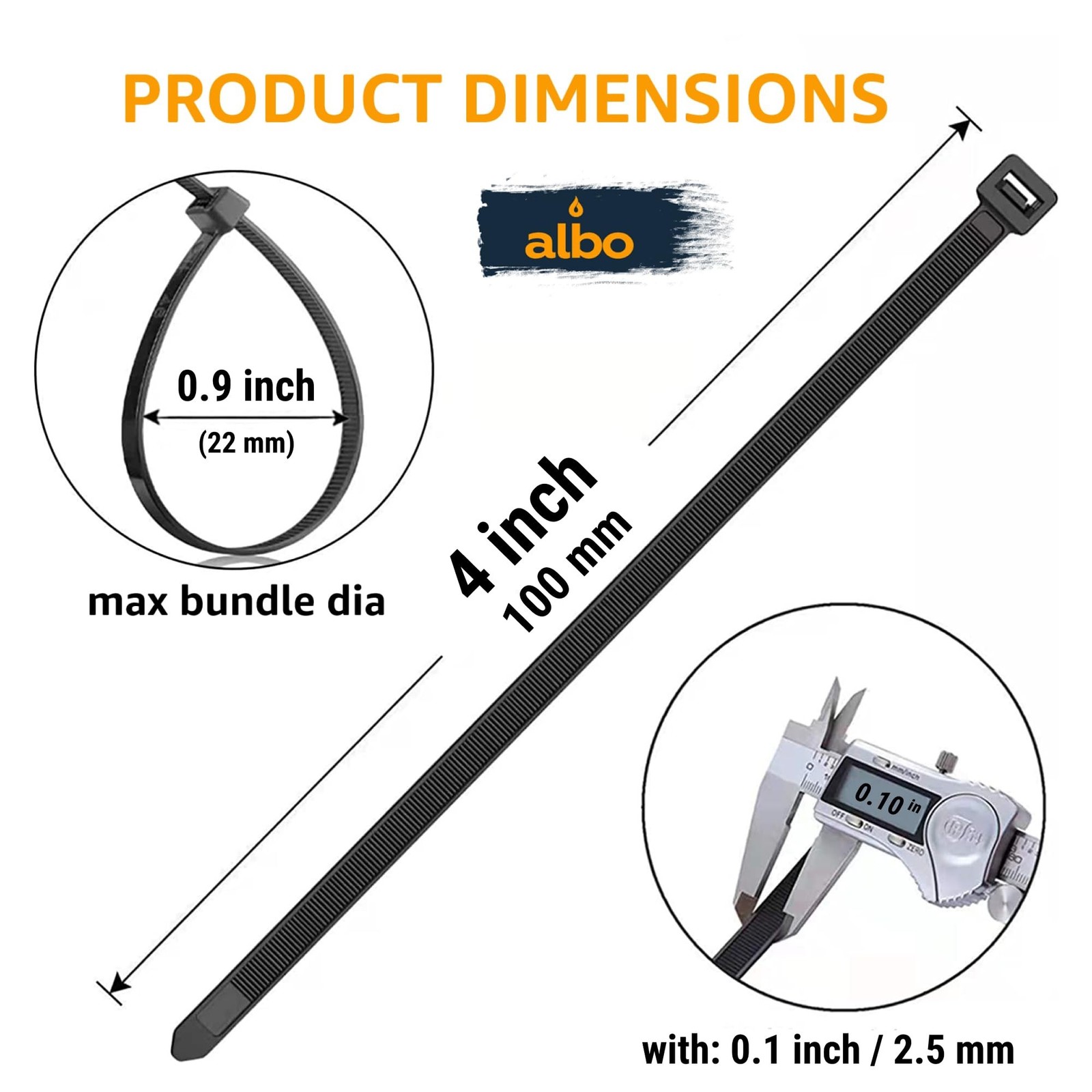 ALBO Black Zip Ties 4 Inch Plastic Cable Ties 1000 Pack Tie Wraps 18lb UV Res...