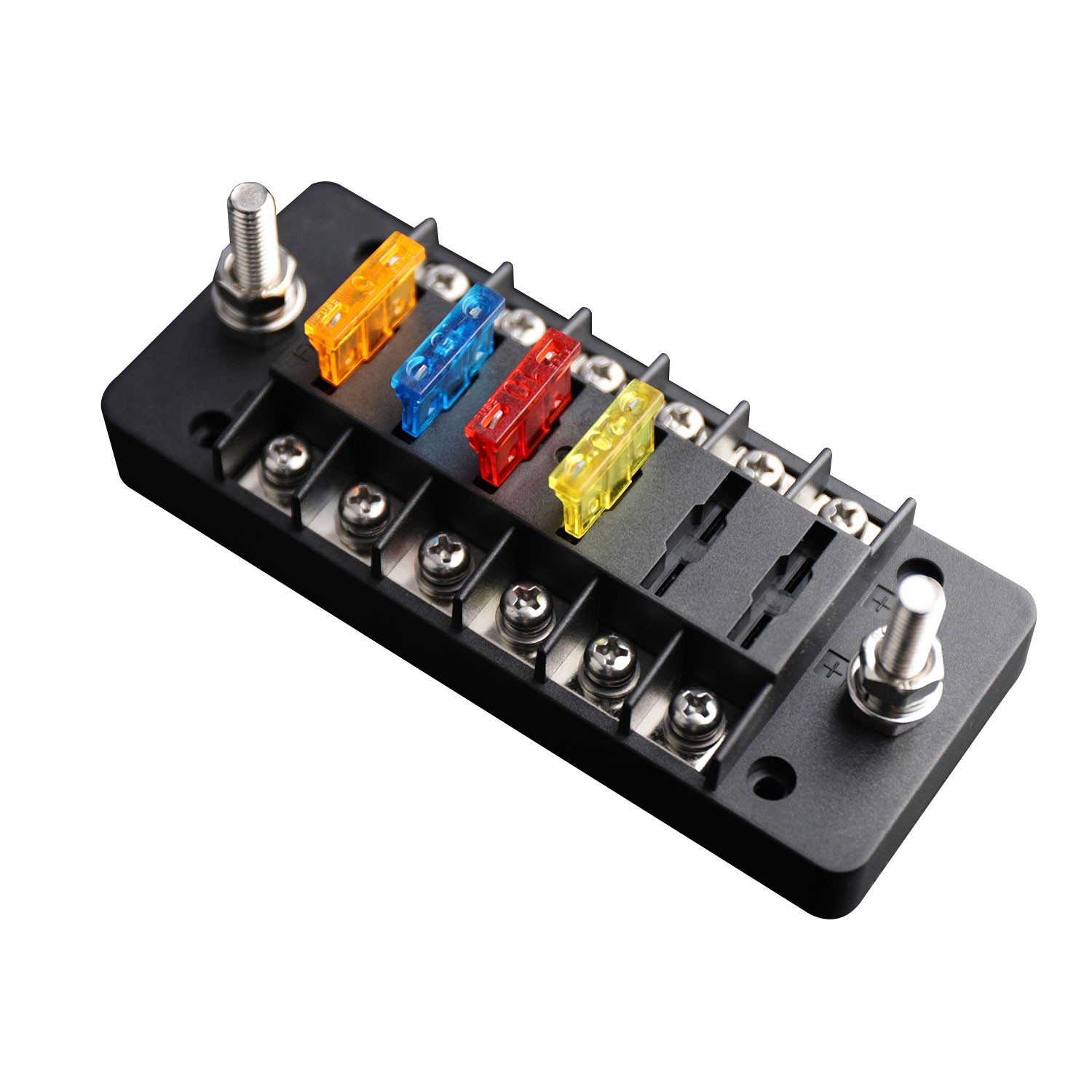 Universal 6 Way Blade Fuse Block Car Boat Auto Power Distribution Holder Box Kit