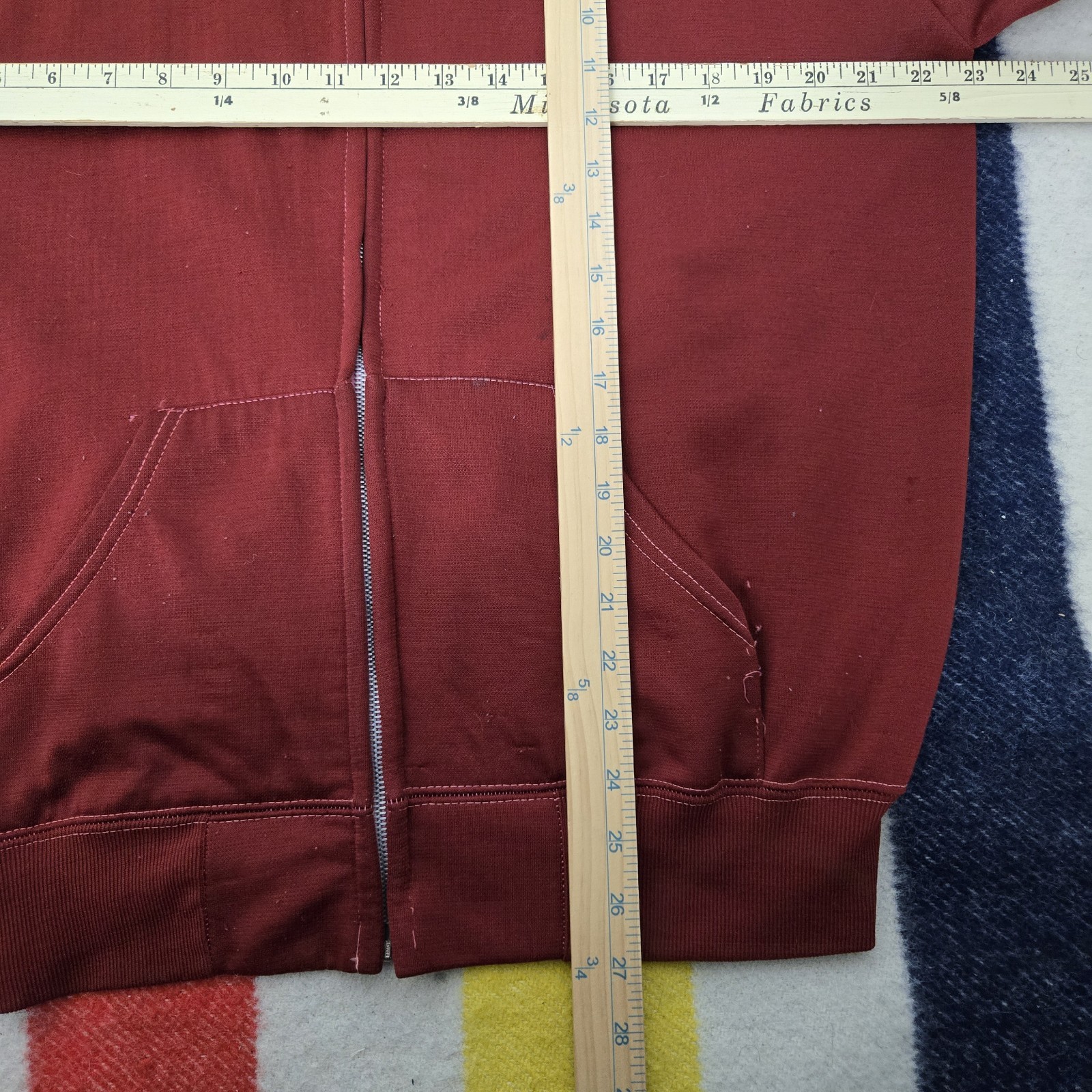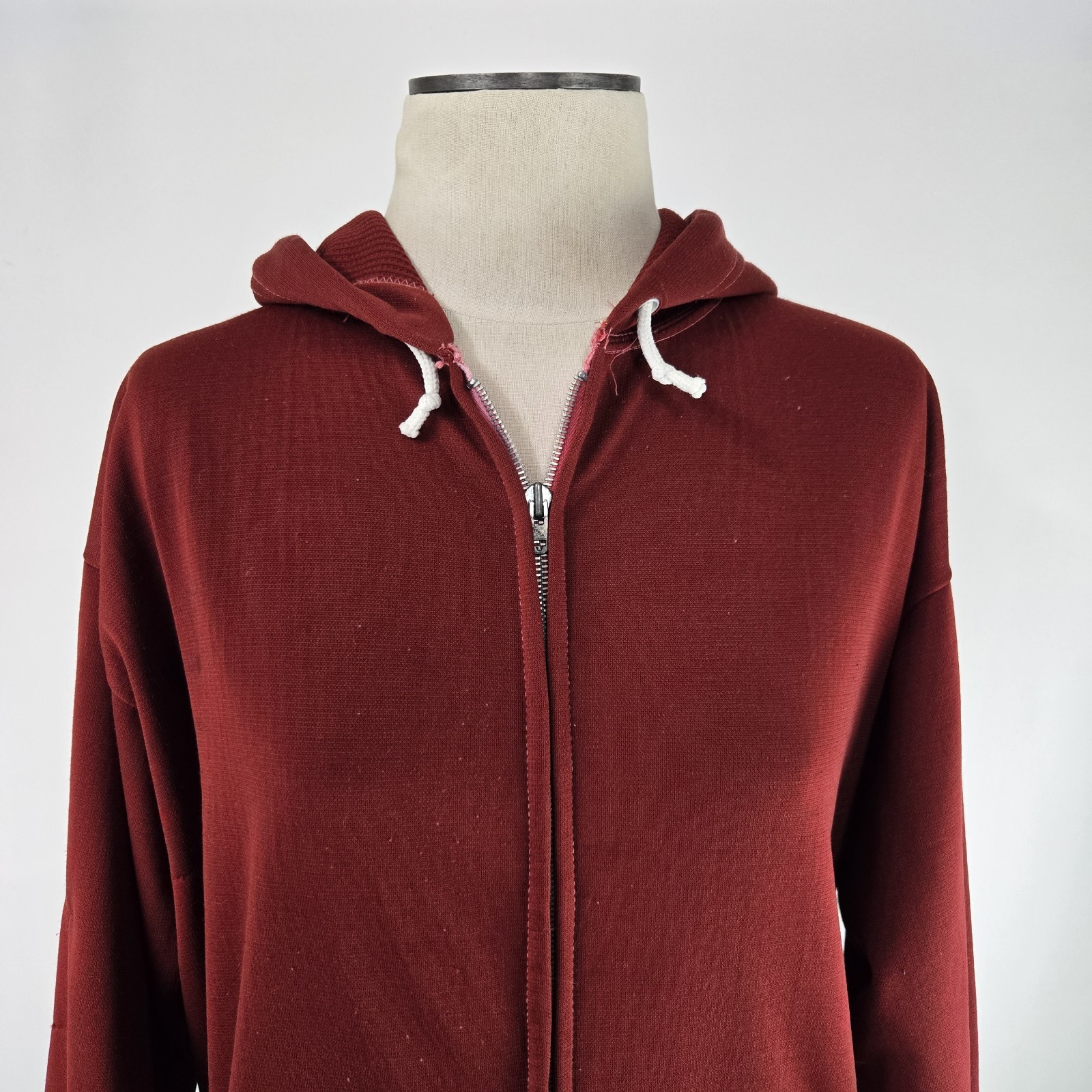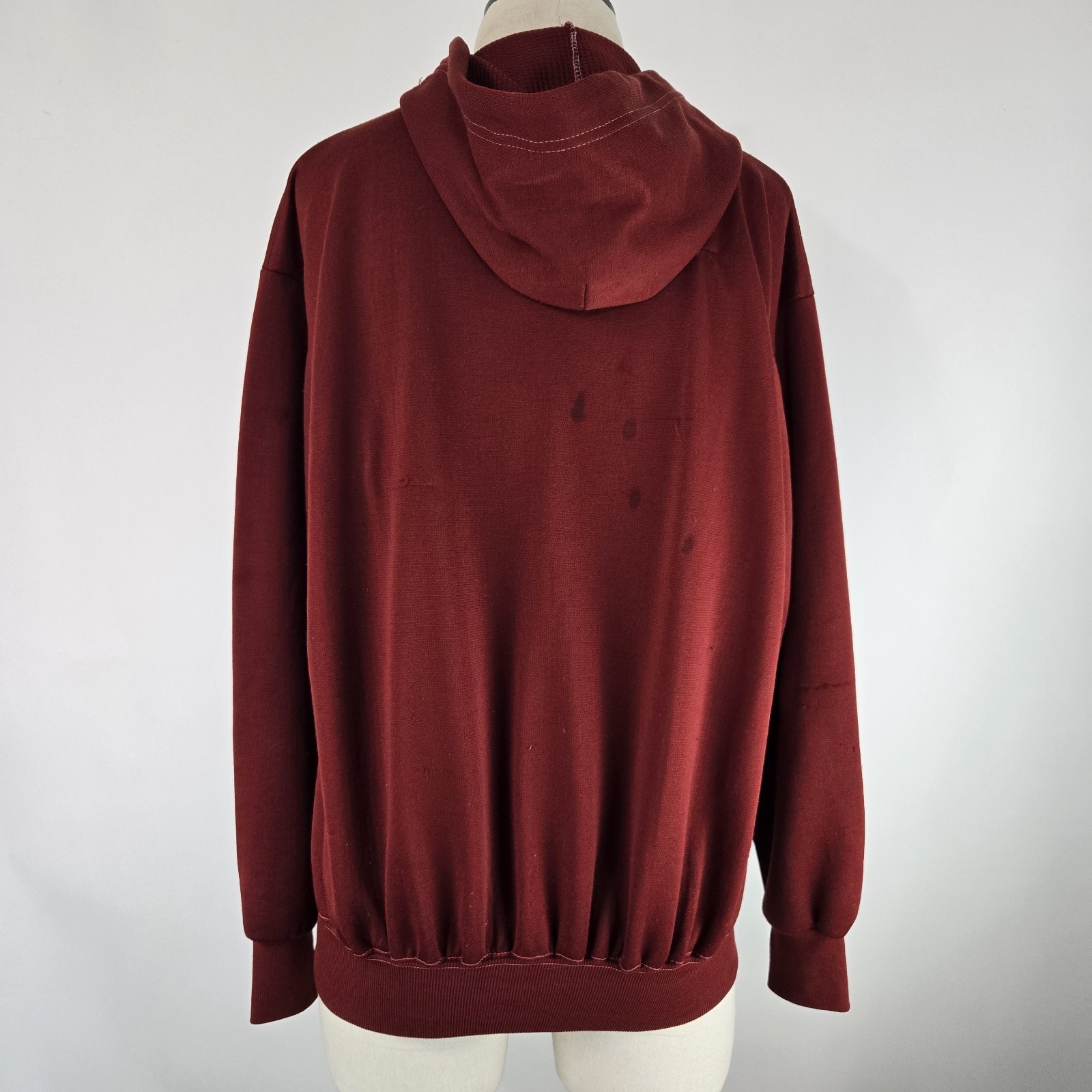 как выглядит Vintage 70s Double Faced Thermal Lined Hoodie Full Zip Waffle Burgundy Size L фото