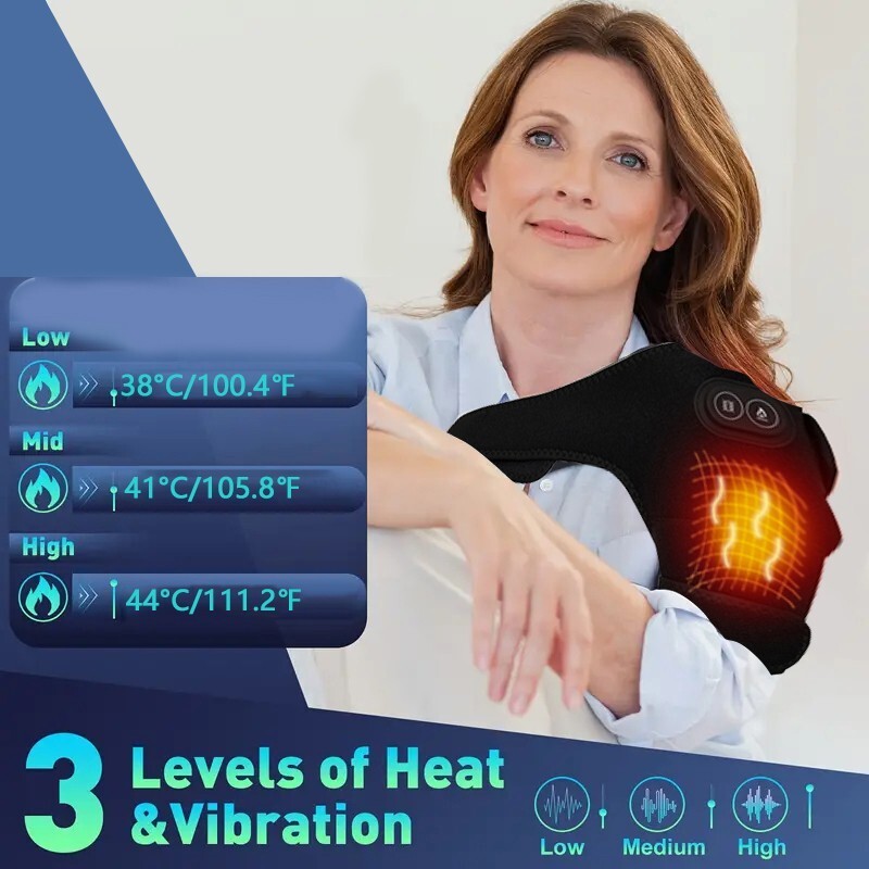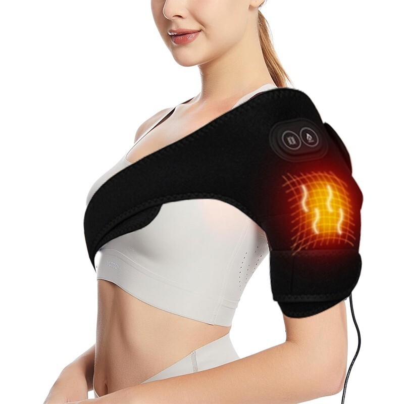 Electric Heated Shoulder Massager Joint Brace Support w/ Vibration Relief Pain