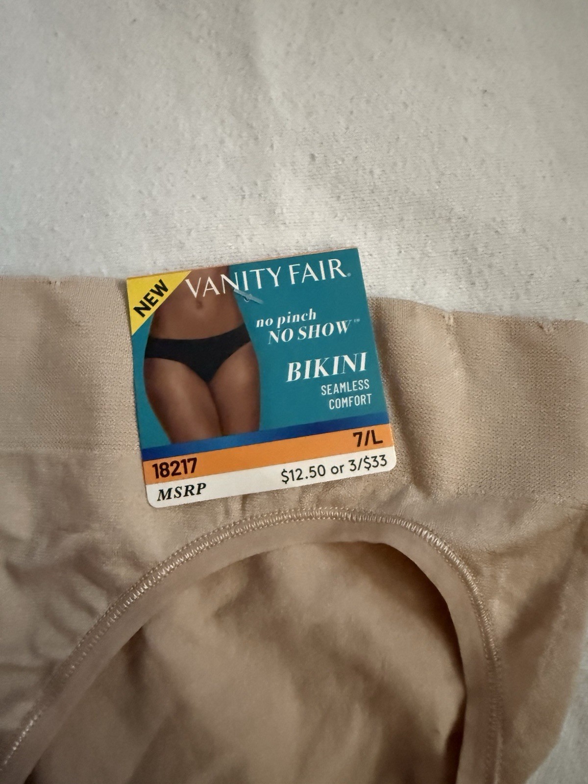 NEW VANITY FAIR Panty No Pinch No Show Seamless Bikini Panty 1 Pair Large 18217