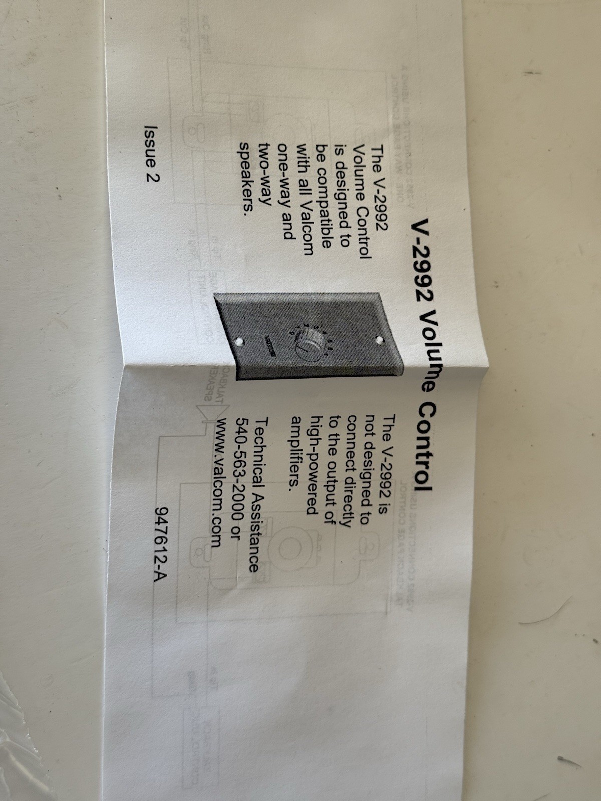 как выглядит VALCOM V-2992-W WALL MOUNT VOLUME CONTROL, DECOR White фото