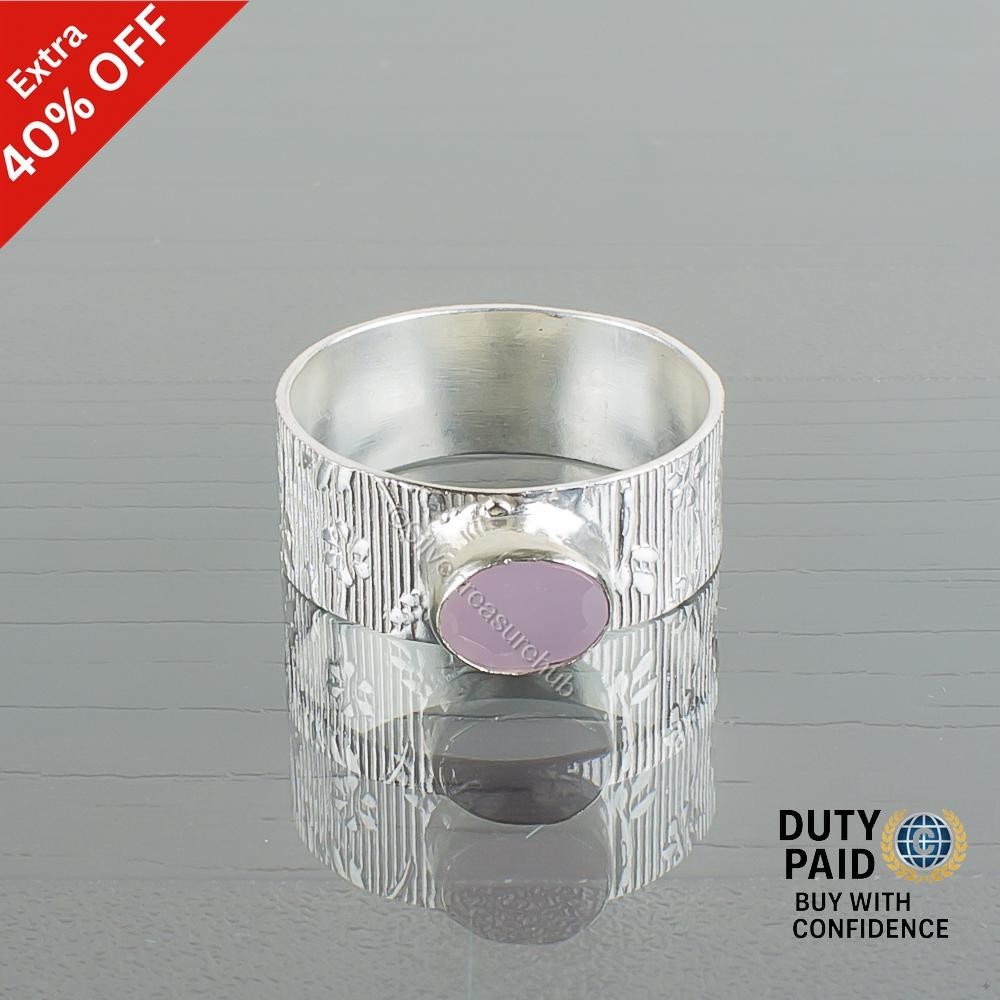 как выглядит Oval Rose Chalcedony Gemstone New Band Wedding Ring Jewelry 925 Sterling Silver фото