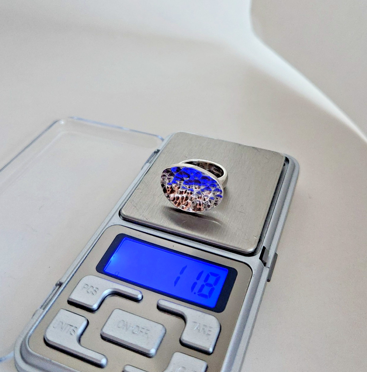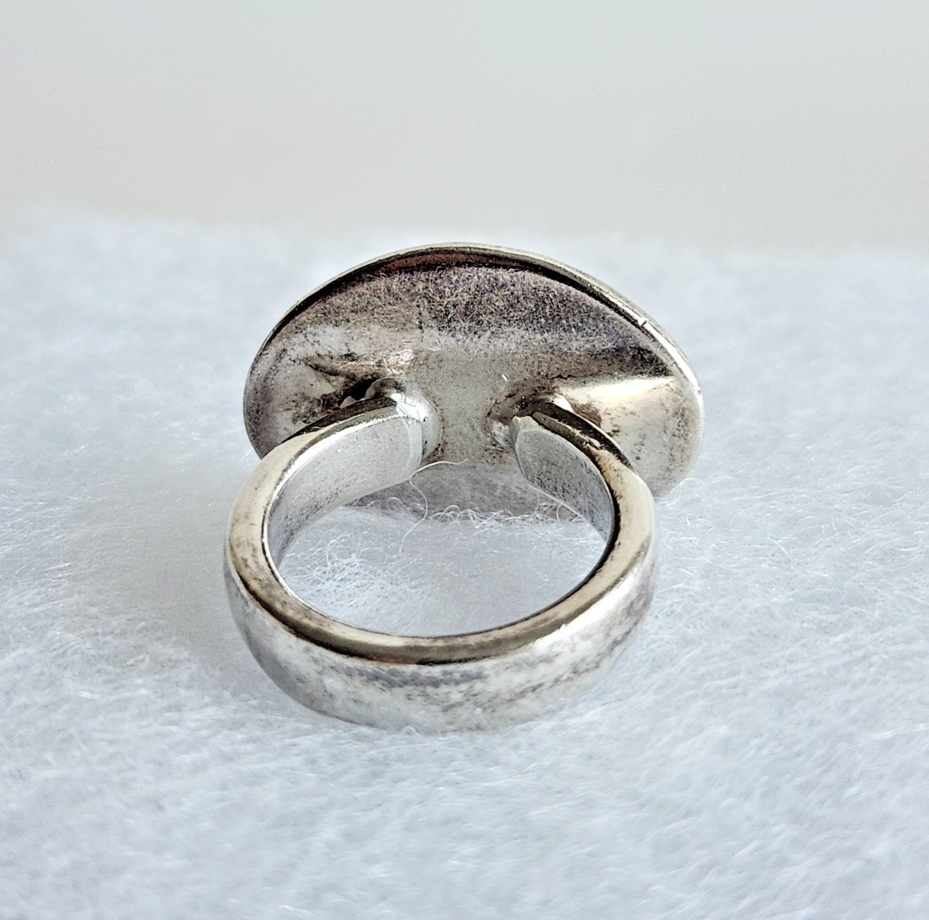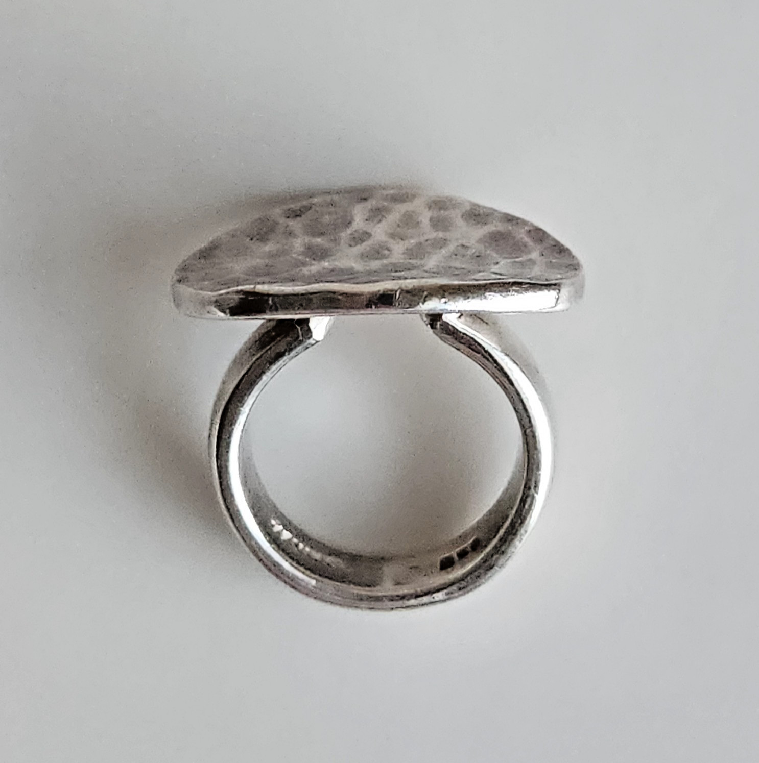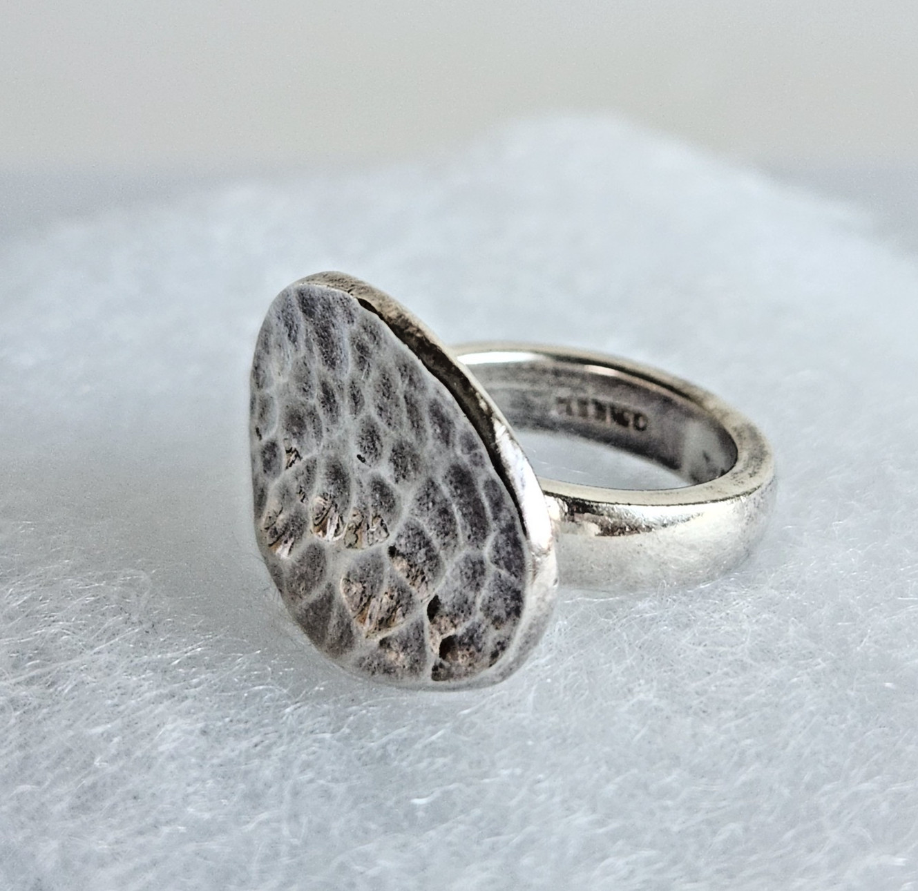 как выглядит Sterling Silver 925 Concave Oval Disc Hammered Ring  Size 6, 11g фото