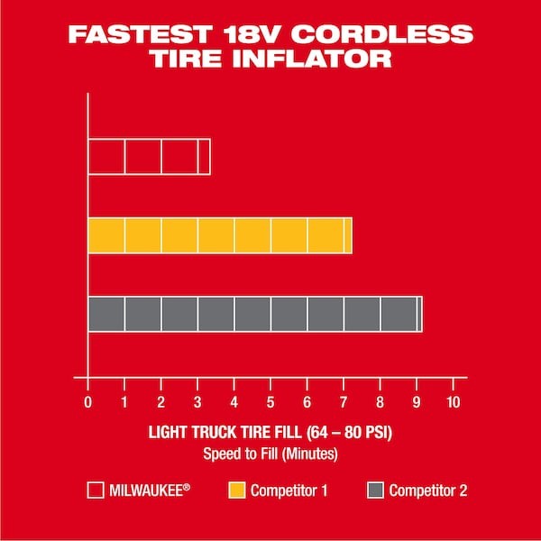 MILWAUKEE FASTEST 18V CORDLESS TIRE INFLATOR. The MILWAUKEE M1