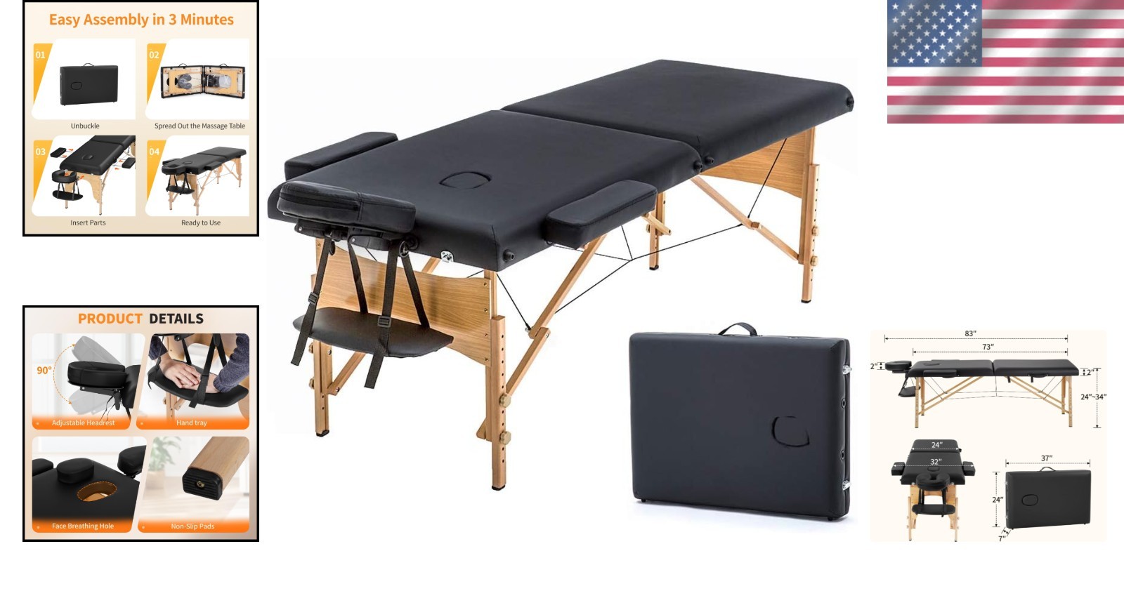 24 Adjustable 2-Folding Lash Bed - Lightweight Spa Table for Professionals